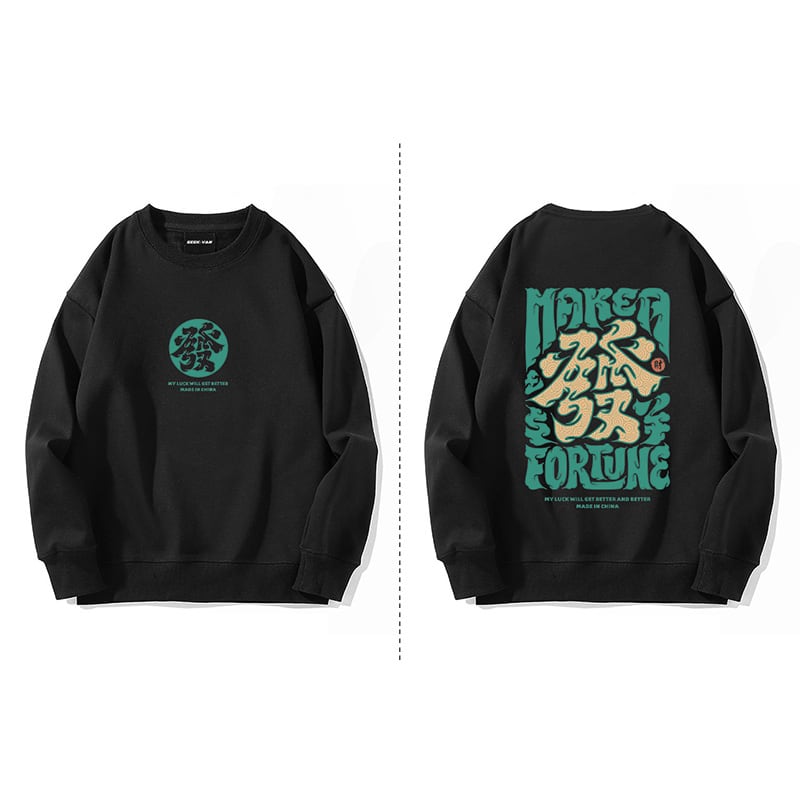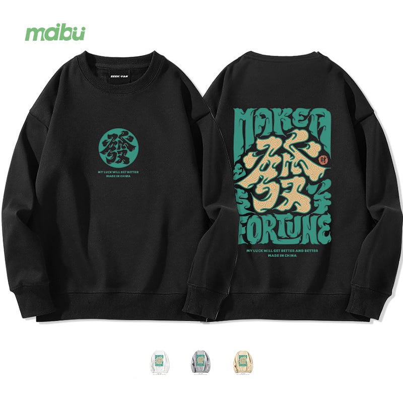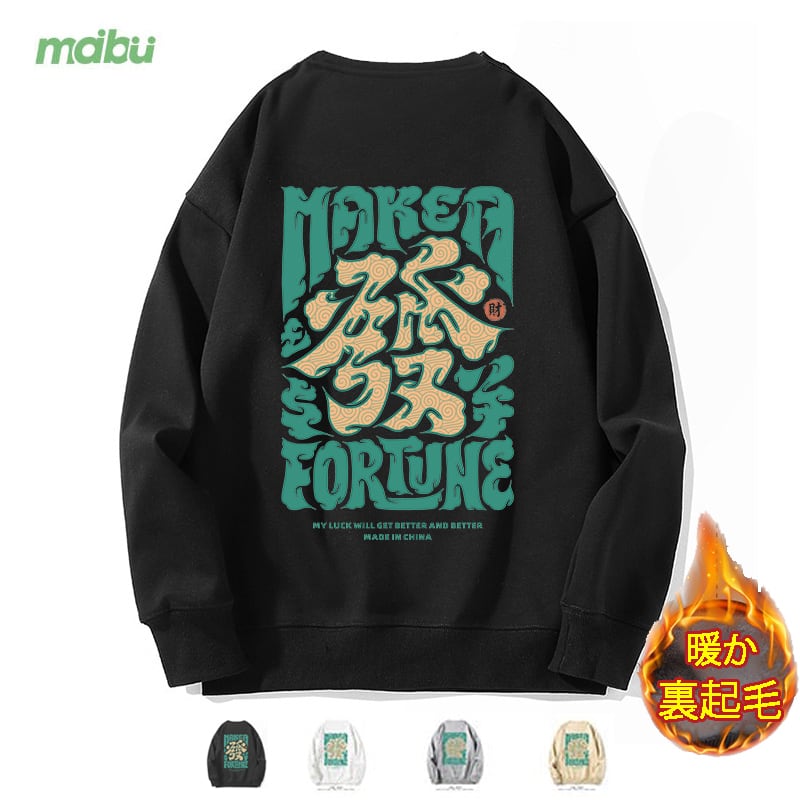 ☼「發」を着こなす!【MAIBU---發シリーズ】★チャイナ風トップス★ 裏起毛 4color スウェット 男女兼用 メンズ ラウンドネック