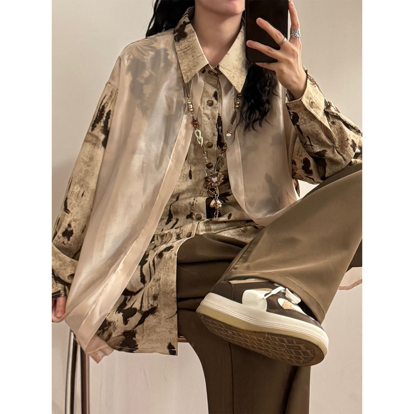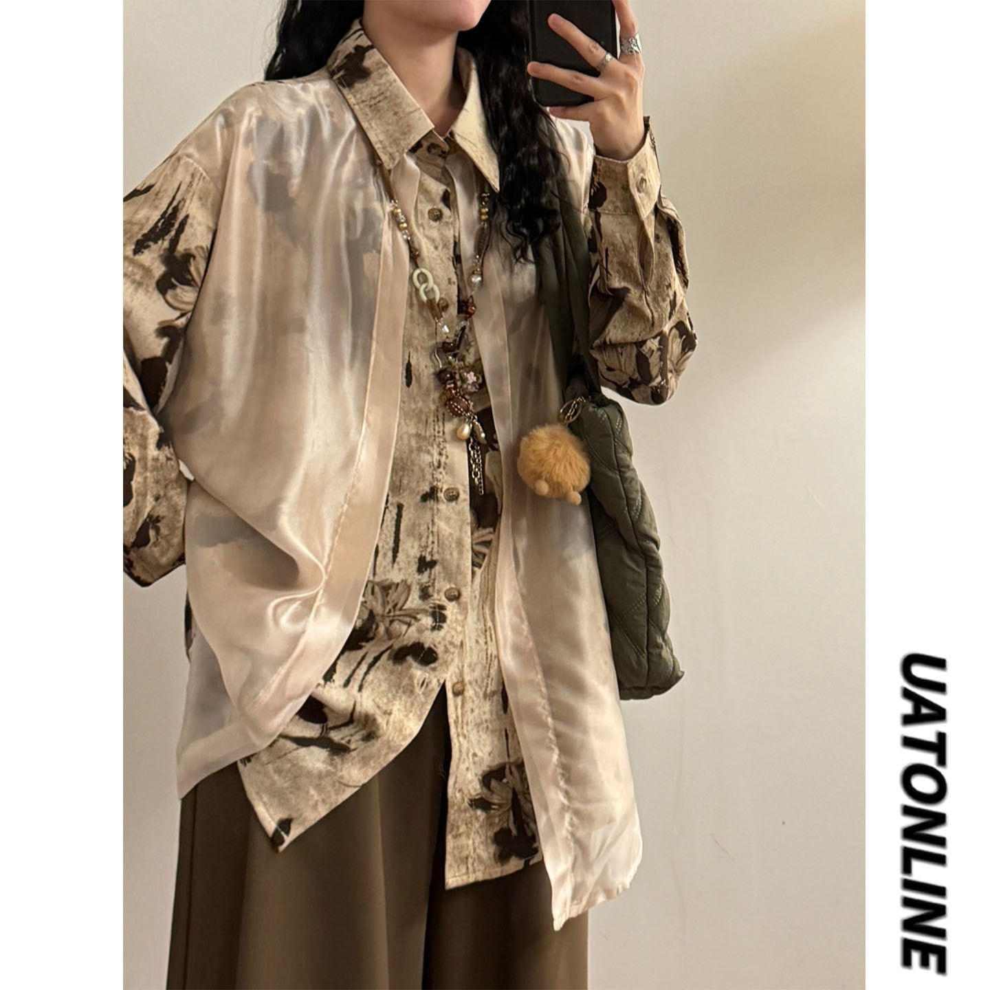 ♥フェイクレイヤードチャイナ風シャツ!【UATONLINEシリーズ】★チャイナ風トップス★ ユニセックス シャツ プリント レトロ