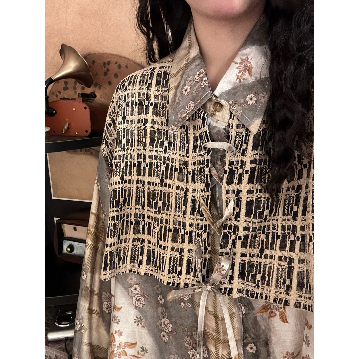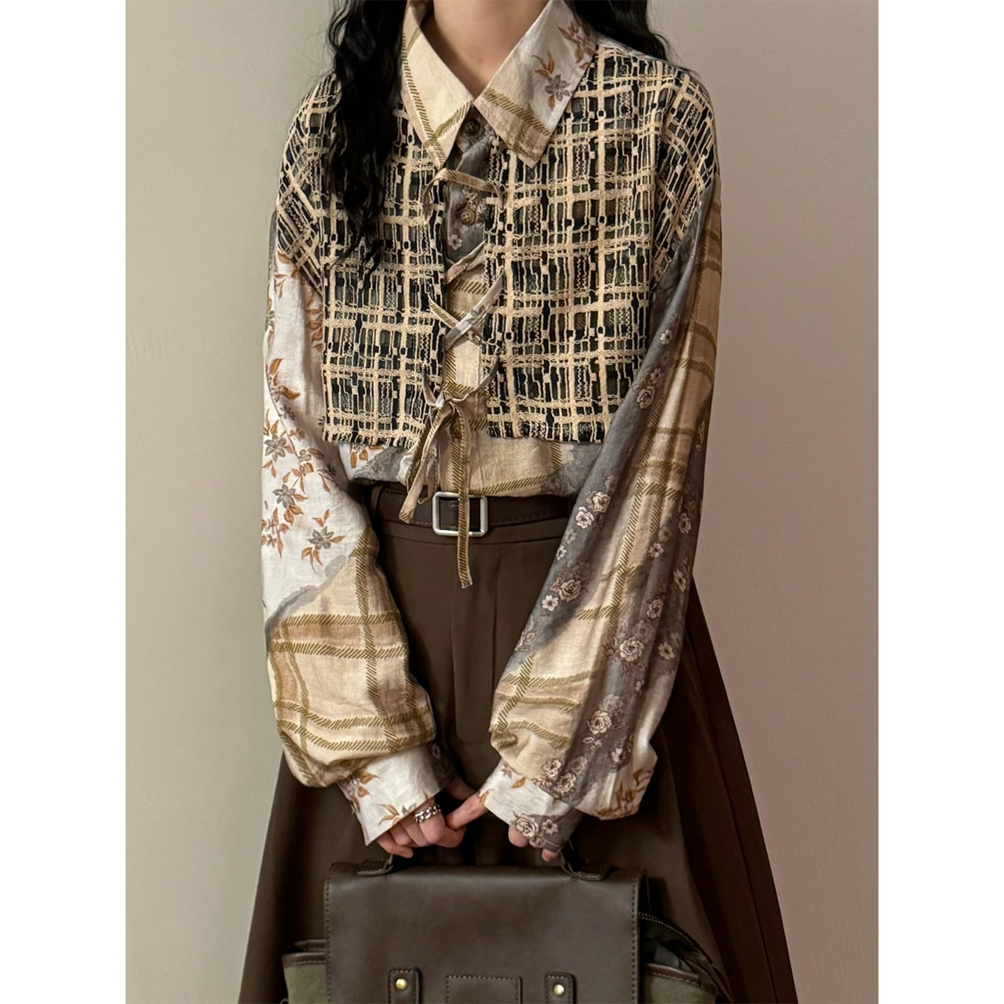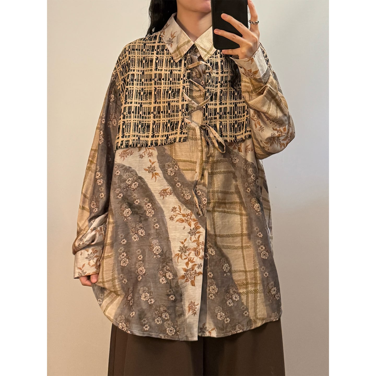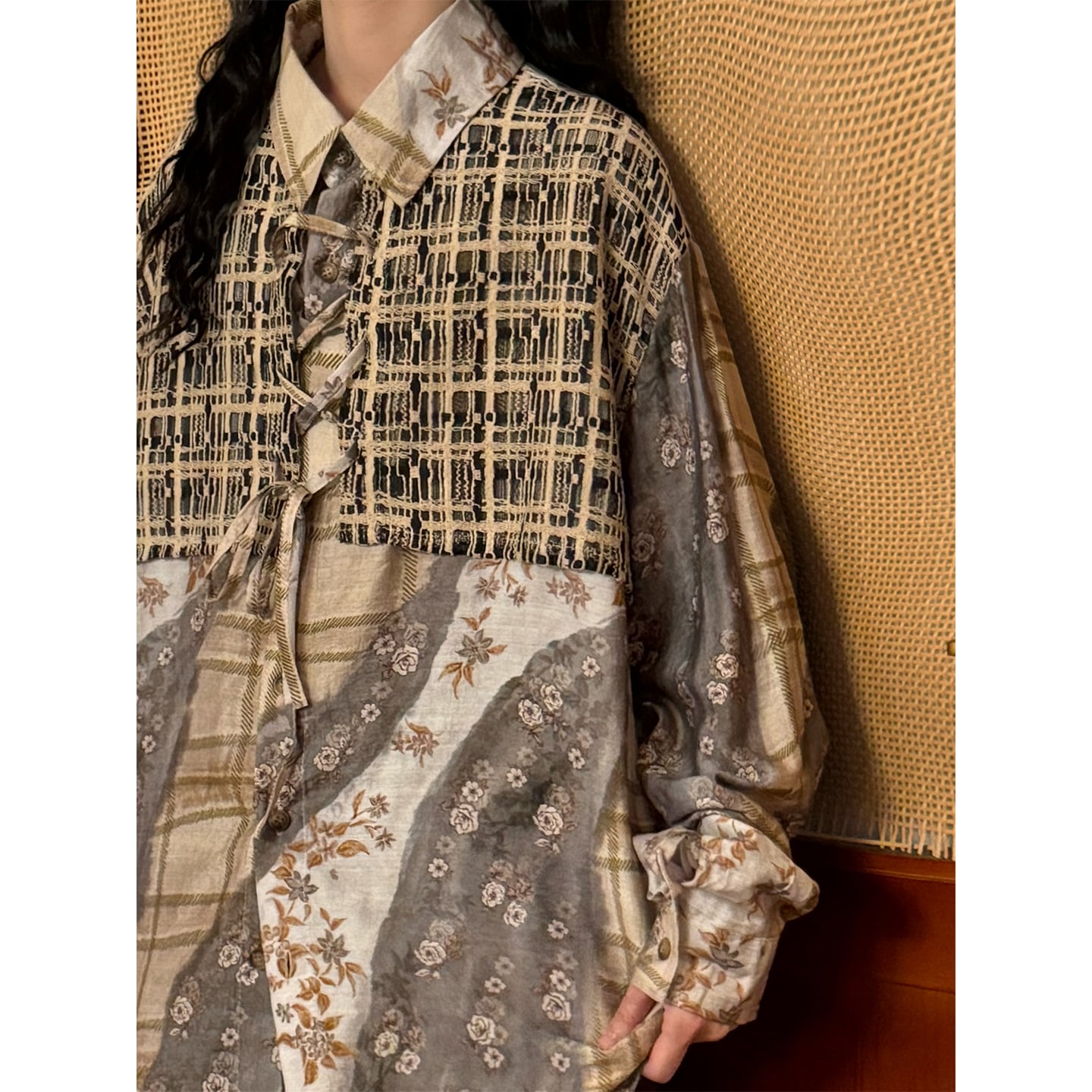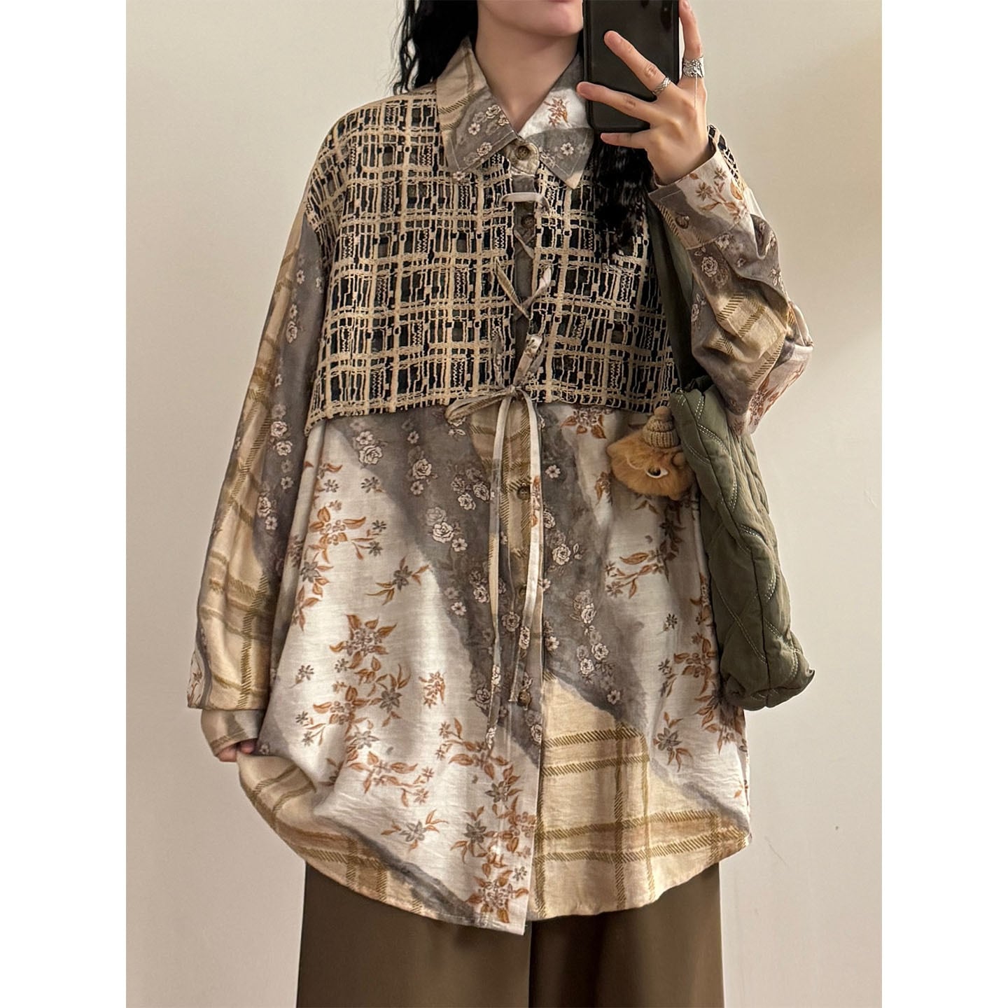 ♥一枚で二重の優しさ!【UATONLINEシリーズ】★チャイナ風トップス★ ユニセックス フェイクレイヤード シャツ プリント レトロ