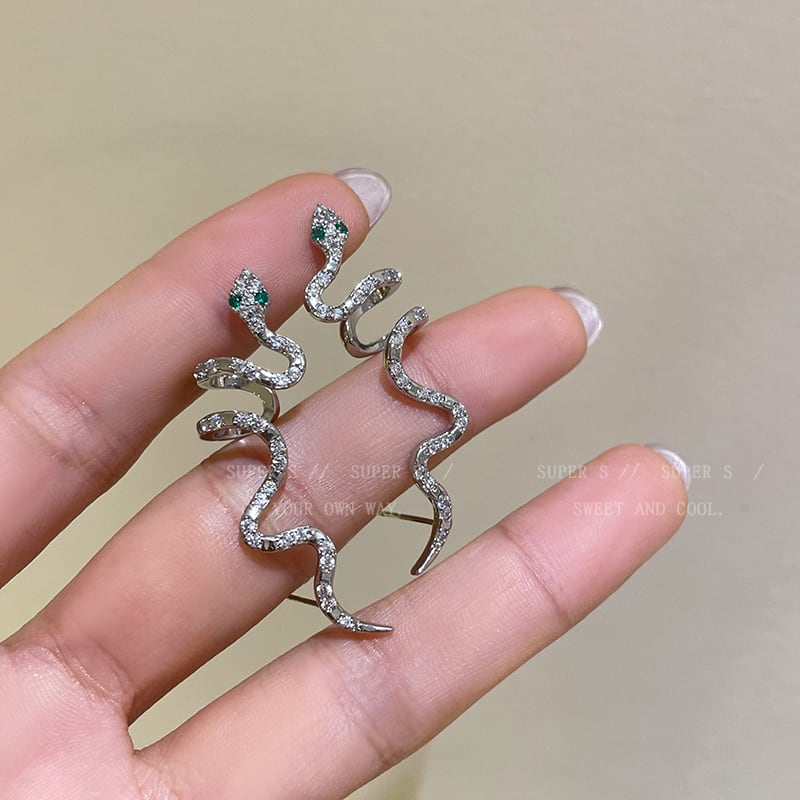 ♥靈蛇のデザイン耳飾り!【SUPER Sシリーズ】★耳飾り★ 2color 蛇 ヘビ ピアス 片方 1個 レディース アクセサリー
