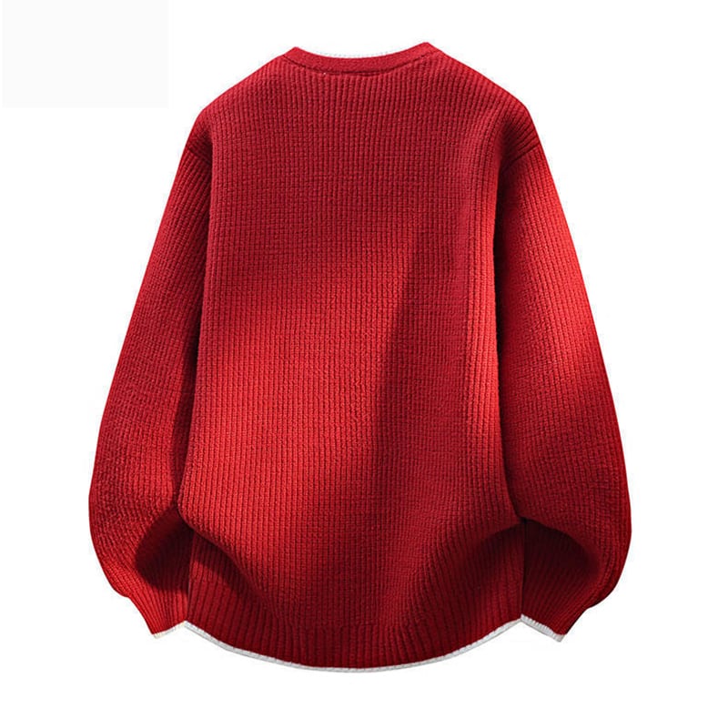 ☼Vネックフェイクレイヤードセーター!【WSシリーズ】★セーター★ 3color ニットトップス 男女兼用 メンズ 大きいサイズ 黒 赤 灰