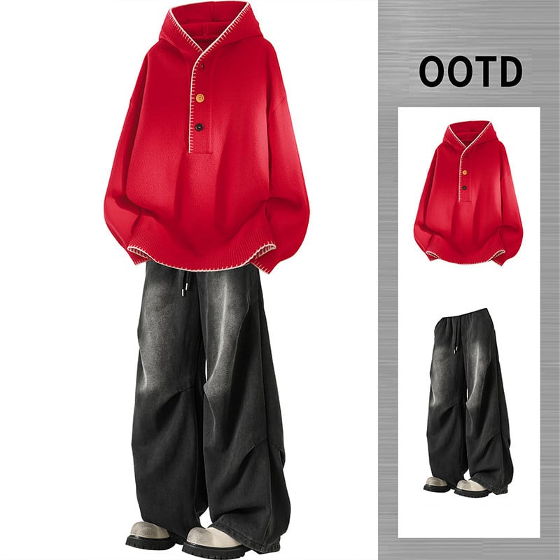 【累計販売数10,000件突破!】 【期間限定|1.29–2.2】☼彩りボタンニット!【WSシリーズ】★セーター★ ユニセックス 3color ニットトップス 男女兼用 メンズ 大きいサイズ 黒 赤 灰