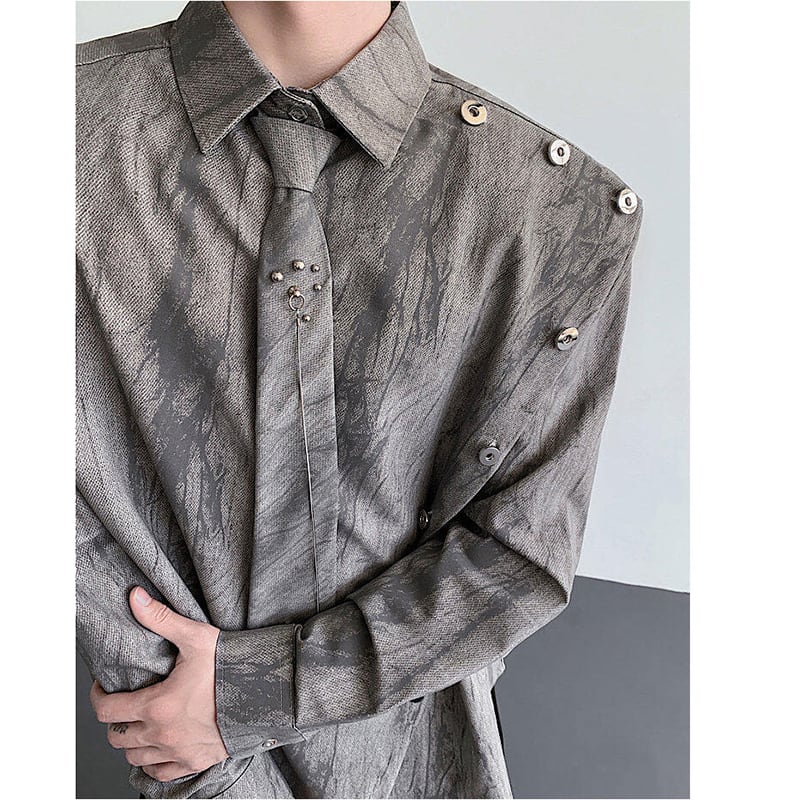 ♥主役級トップス!【入画シリーズ】★チャイナ風トップス★ ネクタイ付き パット付き 絞り染め かっこいい 金属飾り