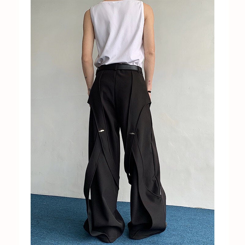 ☠かっこいい!【入画シリーズ】★カジュアルパンツ★ ユニセックス ボトムス ズボン スラックス ブラック 黒い