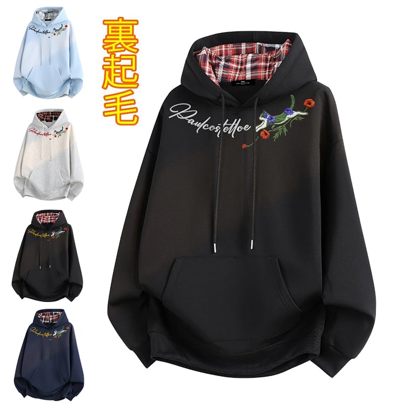 ♥裏起毛走る猫パーカー!【ImcTLシリーズ】★パーカー★ 5color トップス 男女兼用 メンズ レディース チェック柄 アルファベット 猫 猫柄