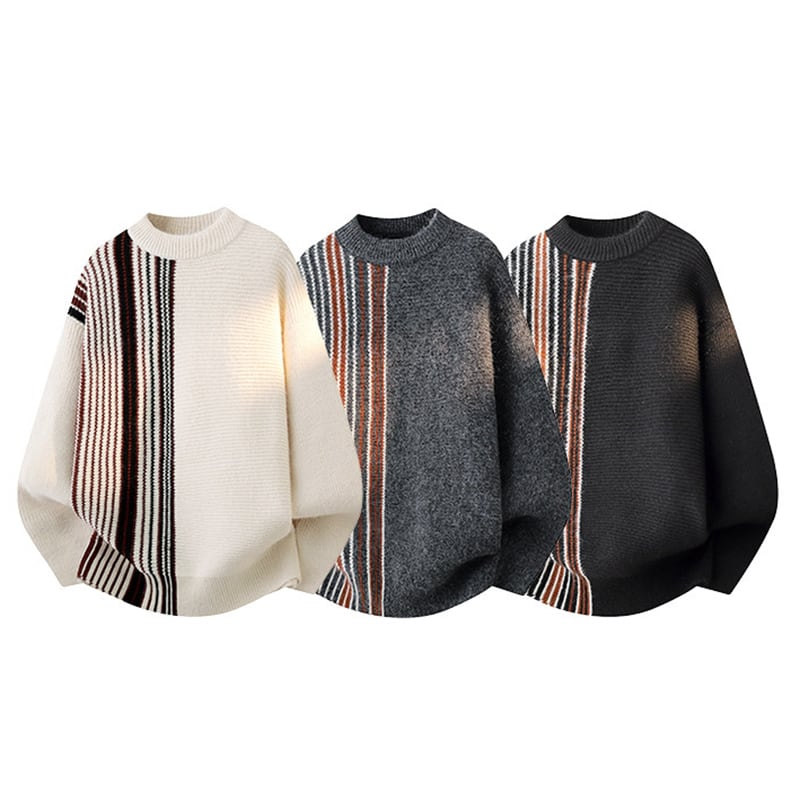 ☼ストライプのデザインが、秋冬の主役になる!【WSシリーズ】★セーター★ ユニセックス 3color ニットトップス 大きいサイズ 縦縞 縞模様 配色