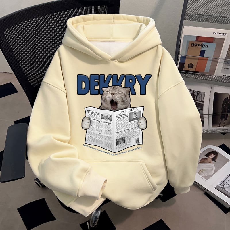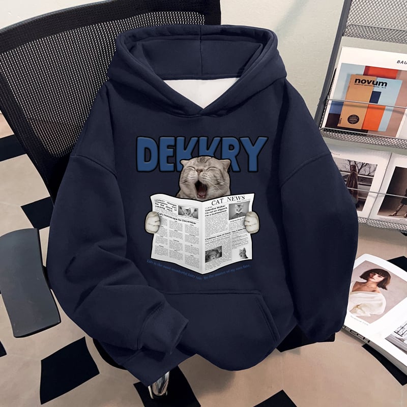 ♥裏起毛新聞猫パーカー!【DEシリーズ】★パーカー★ ユニセックス 4color トップス 猫 ネコ 猫柄 可愛い