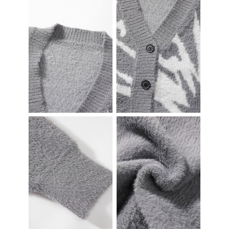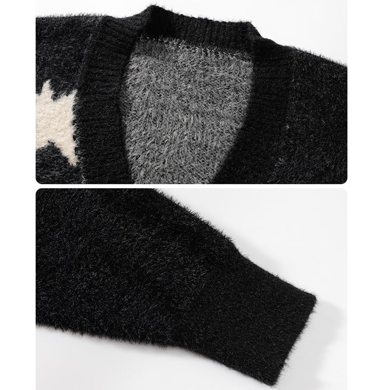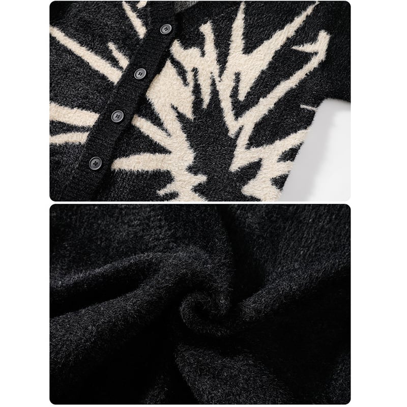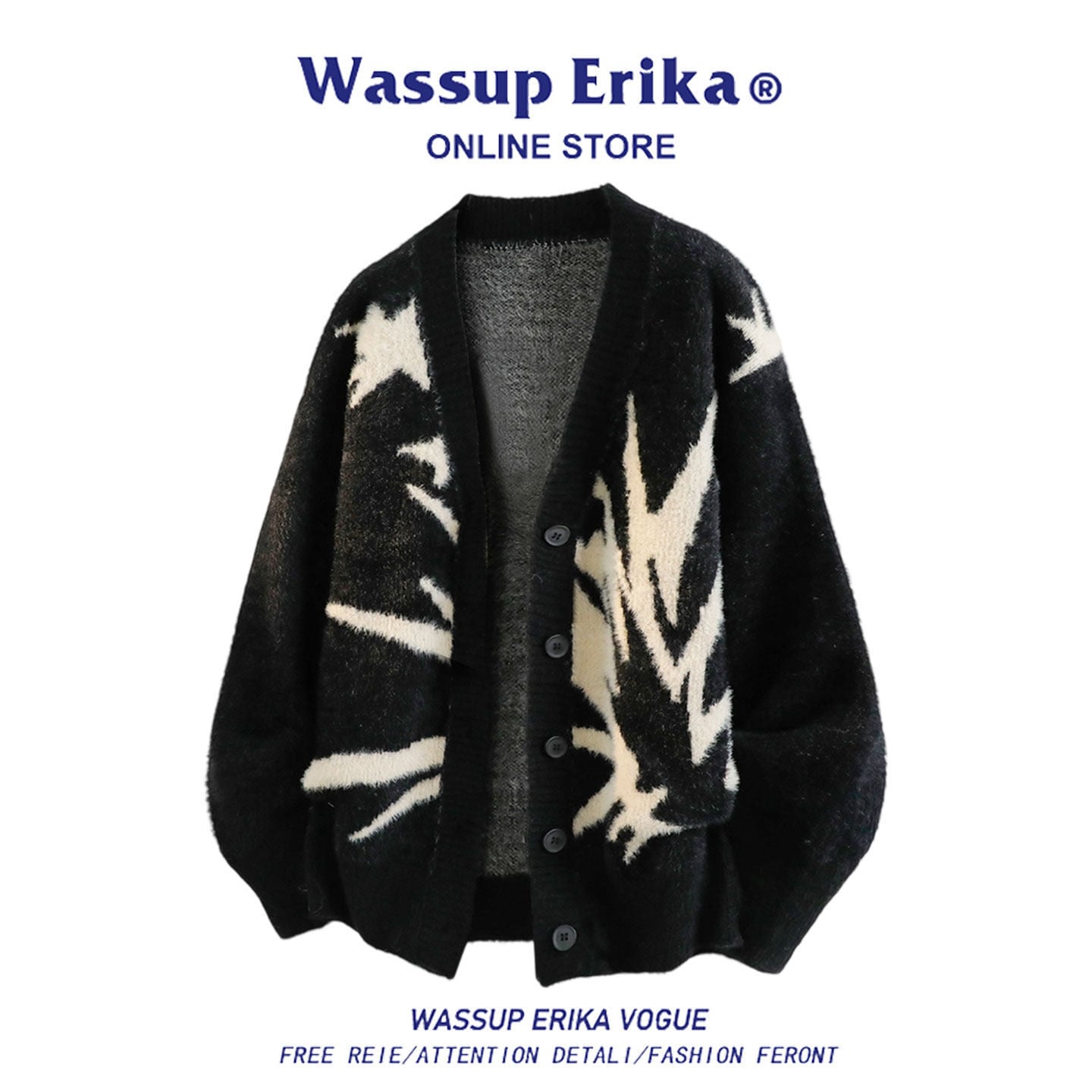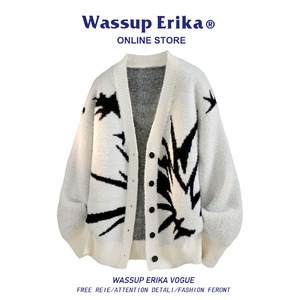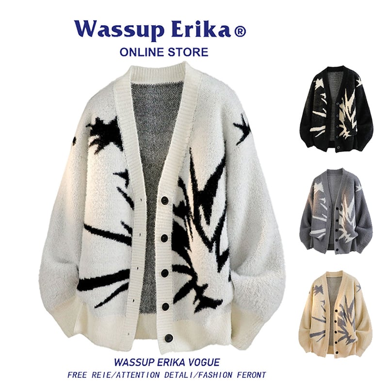 ☀Vネック稲妻柄カーディガン!【WSシリーズ】★セーター★ ユニセックス 3color トップス 配色 カジュアル