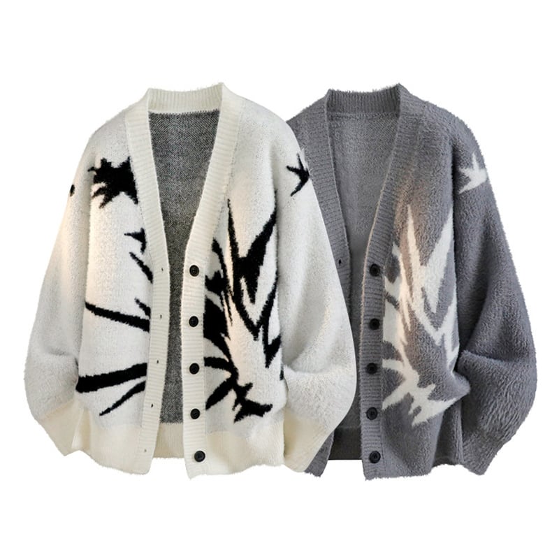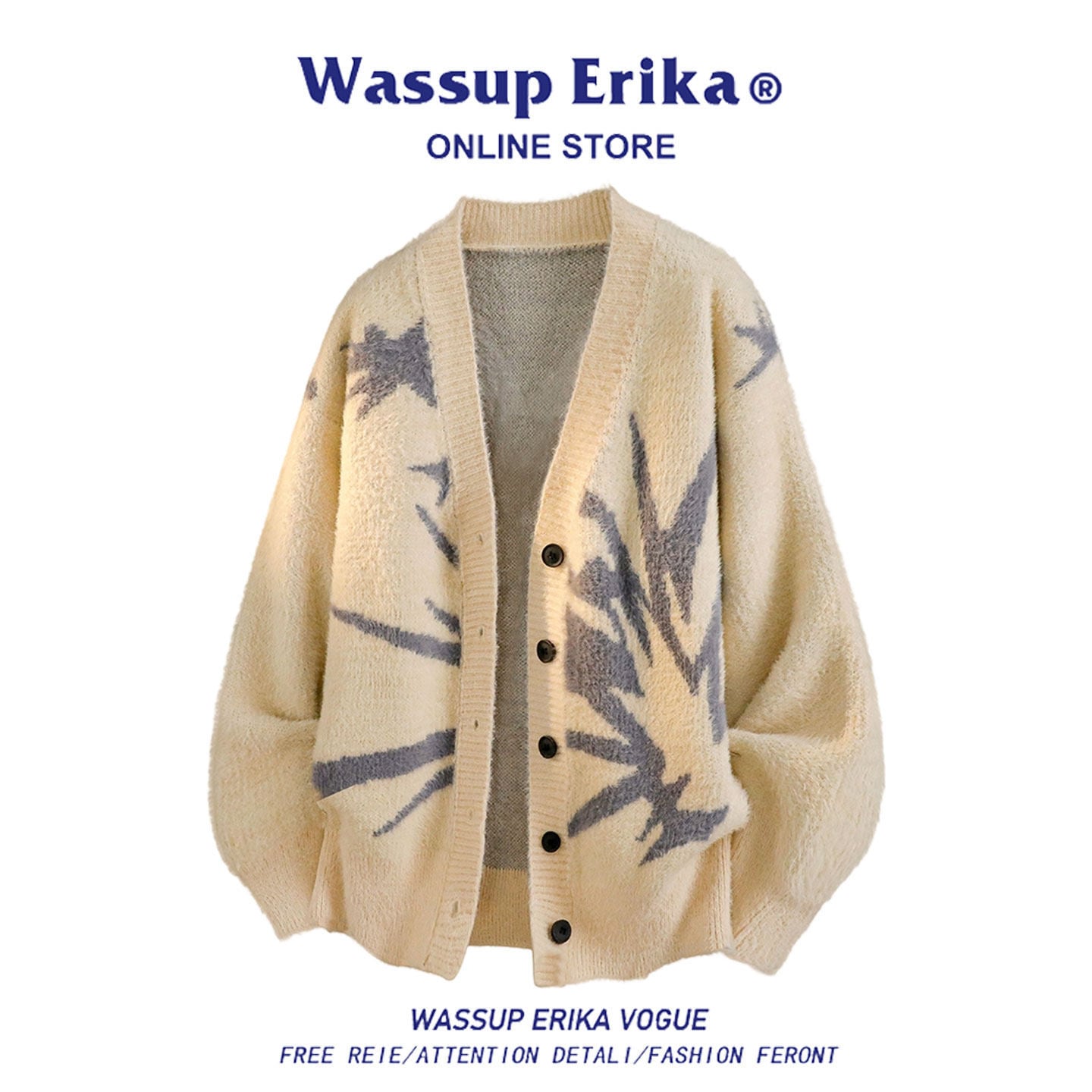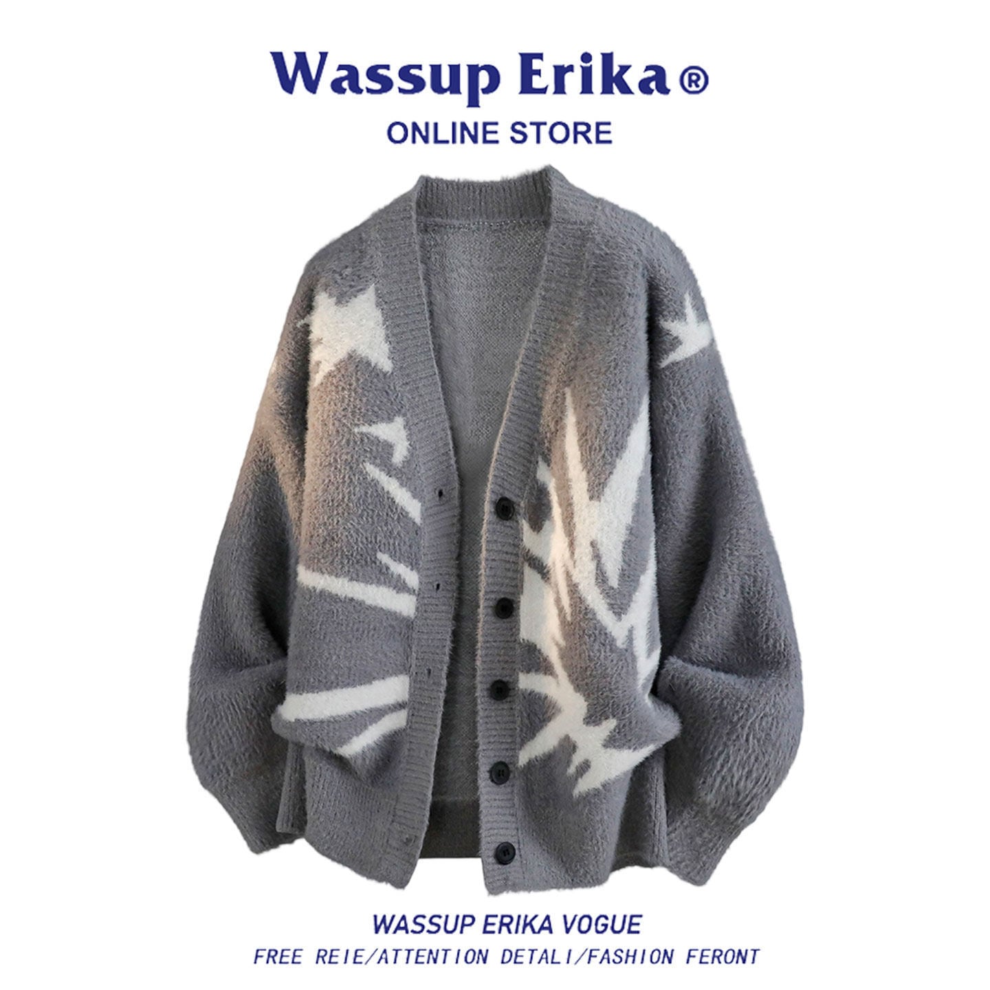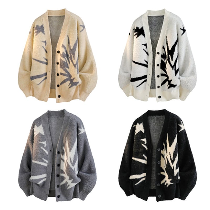☀Vネック稲妻柄カーディガン!【WSシリーズ】★セーター★ ユニセックス 3color トップス 配色 カジュアル