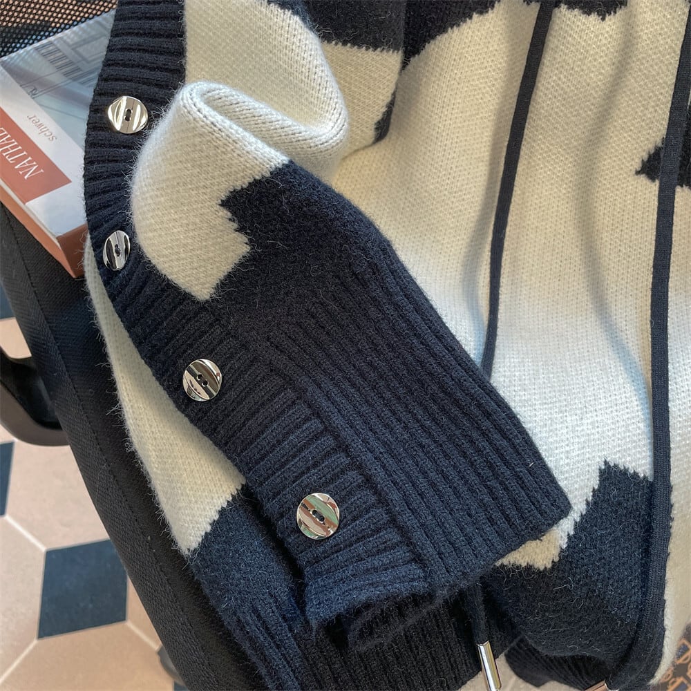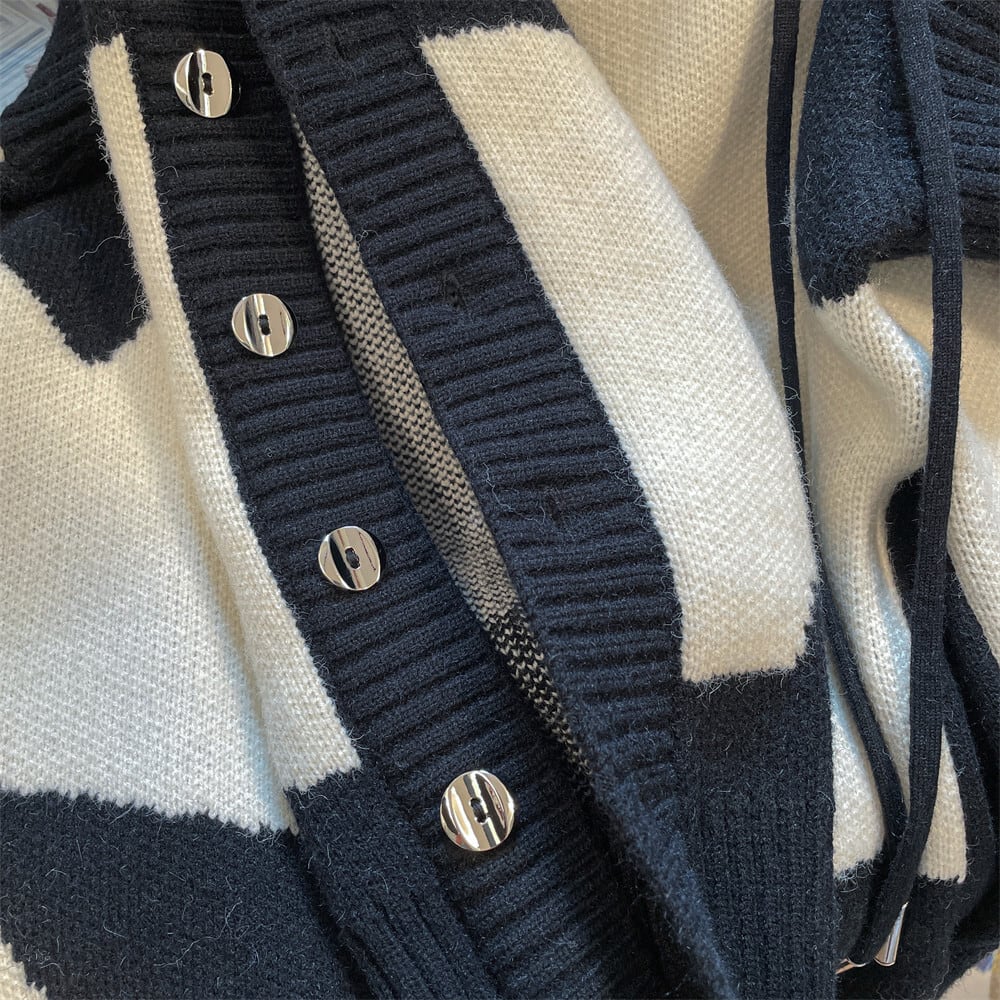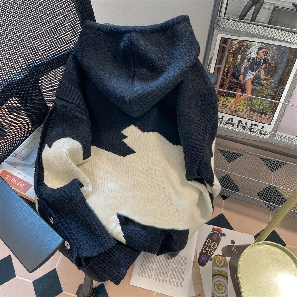 ♥拼接ぎとフードで際立つ、新たな定番!【BMOBシリーズ】★セーター★ ユニセックス ニットパーカー トップス フェイクレイヤード ブラック 黒い