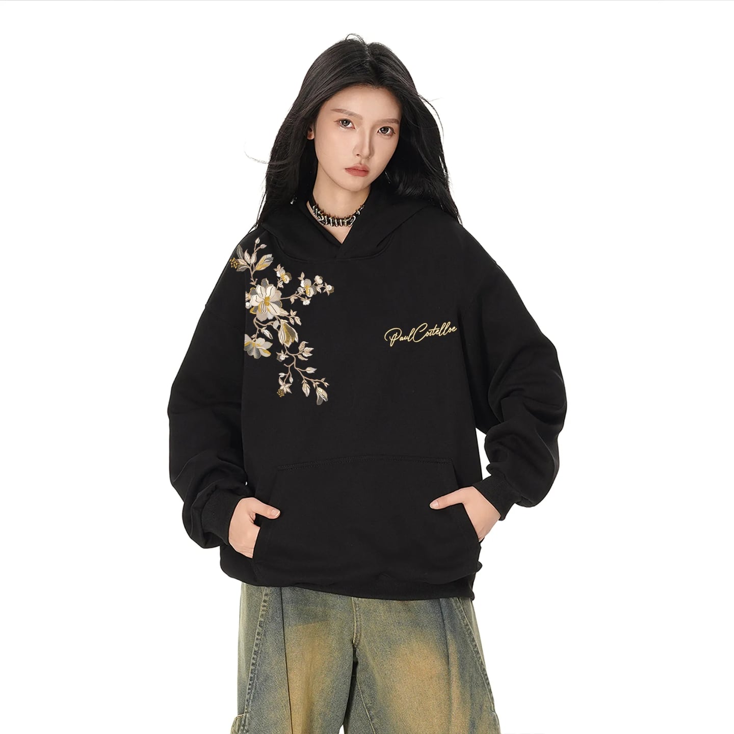 ♥裏起毛フラワー&レタープリント パーカー!【ImcTLシリーズ】★パーカー★ 裏起毛 ユニセックス 4color トップス