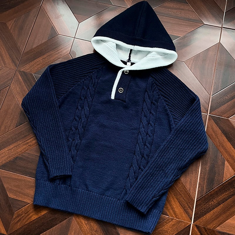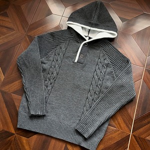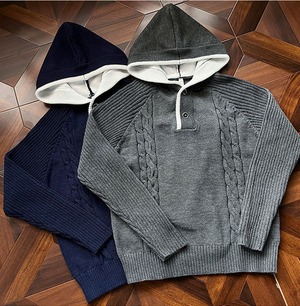 ☀配色ニットパーカー!【YSWYNシリーズ】★セーター★ ユニセックス 2color ニットトップス グレー ネイビー 配色
