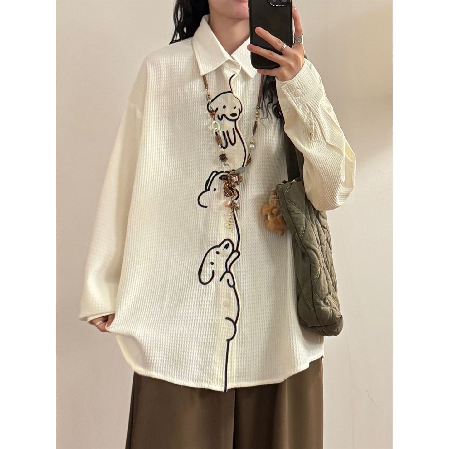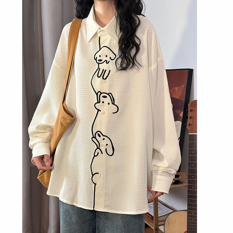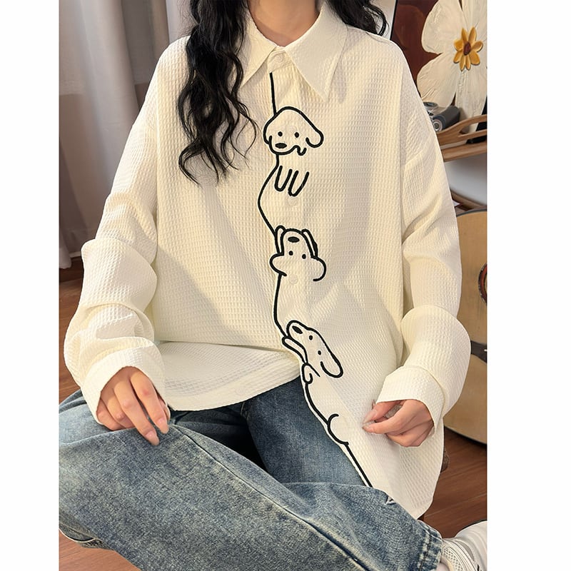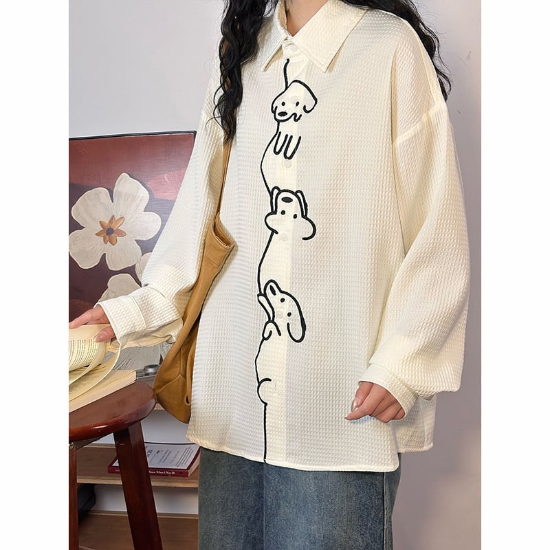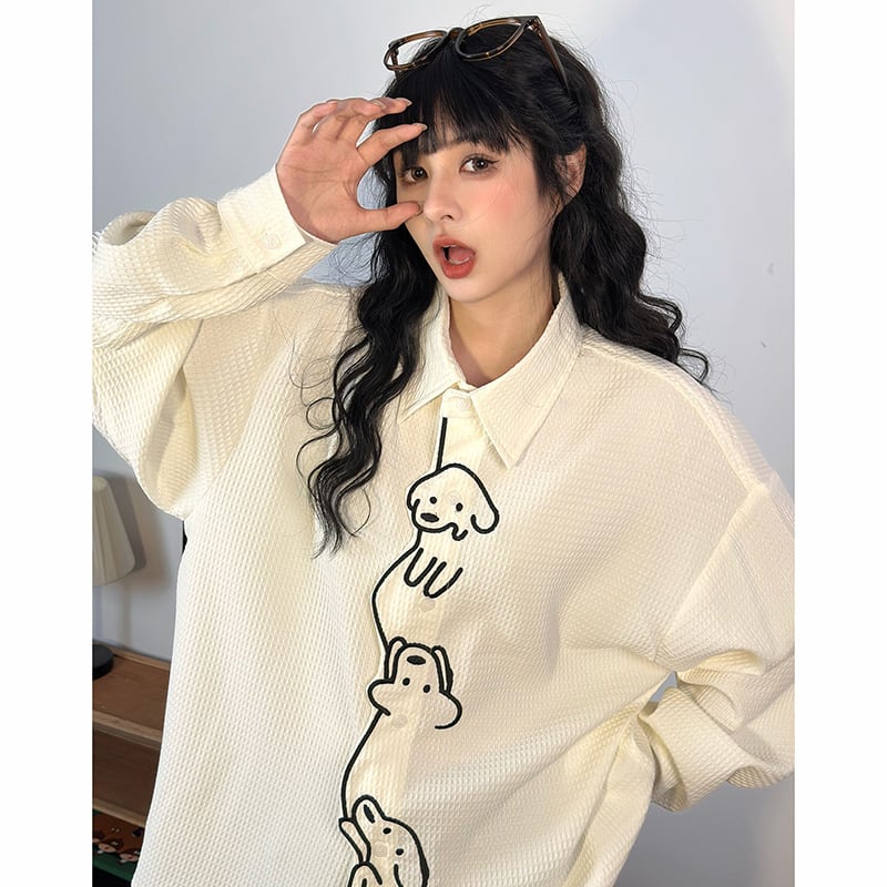 ♥ワンポイントの刺繡が愛らしい!【UATONLINEシリーズ】★シャツ★ ユニセックス トップス 長袖シャツ