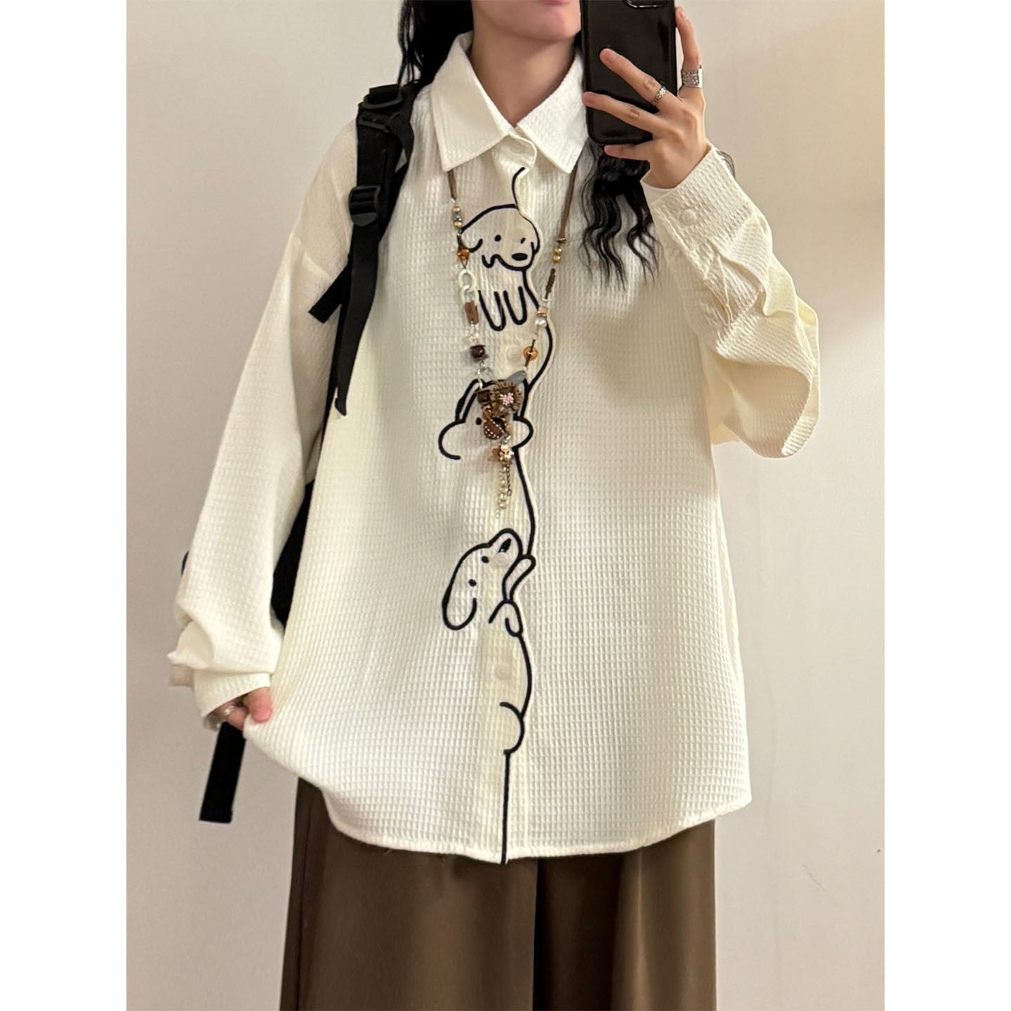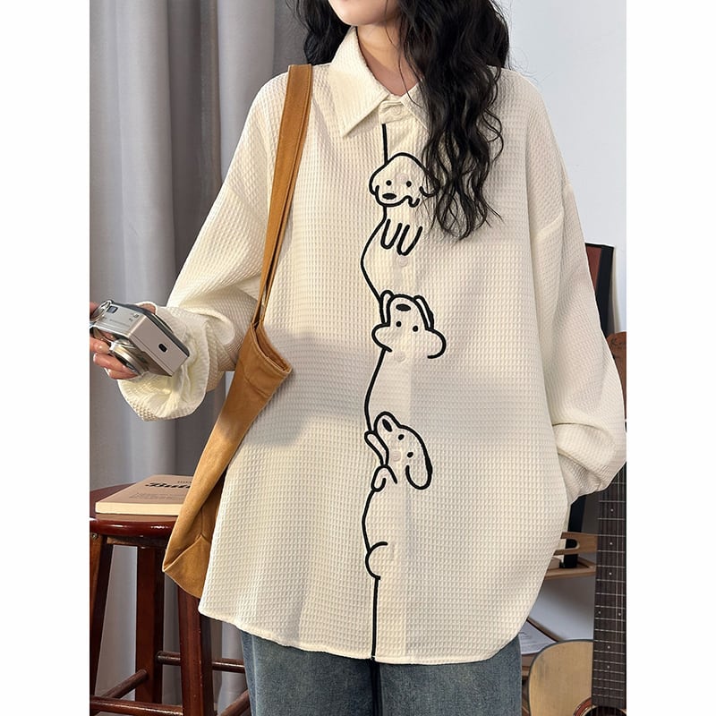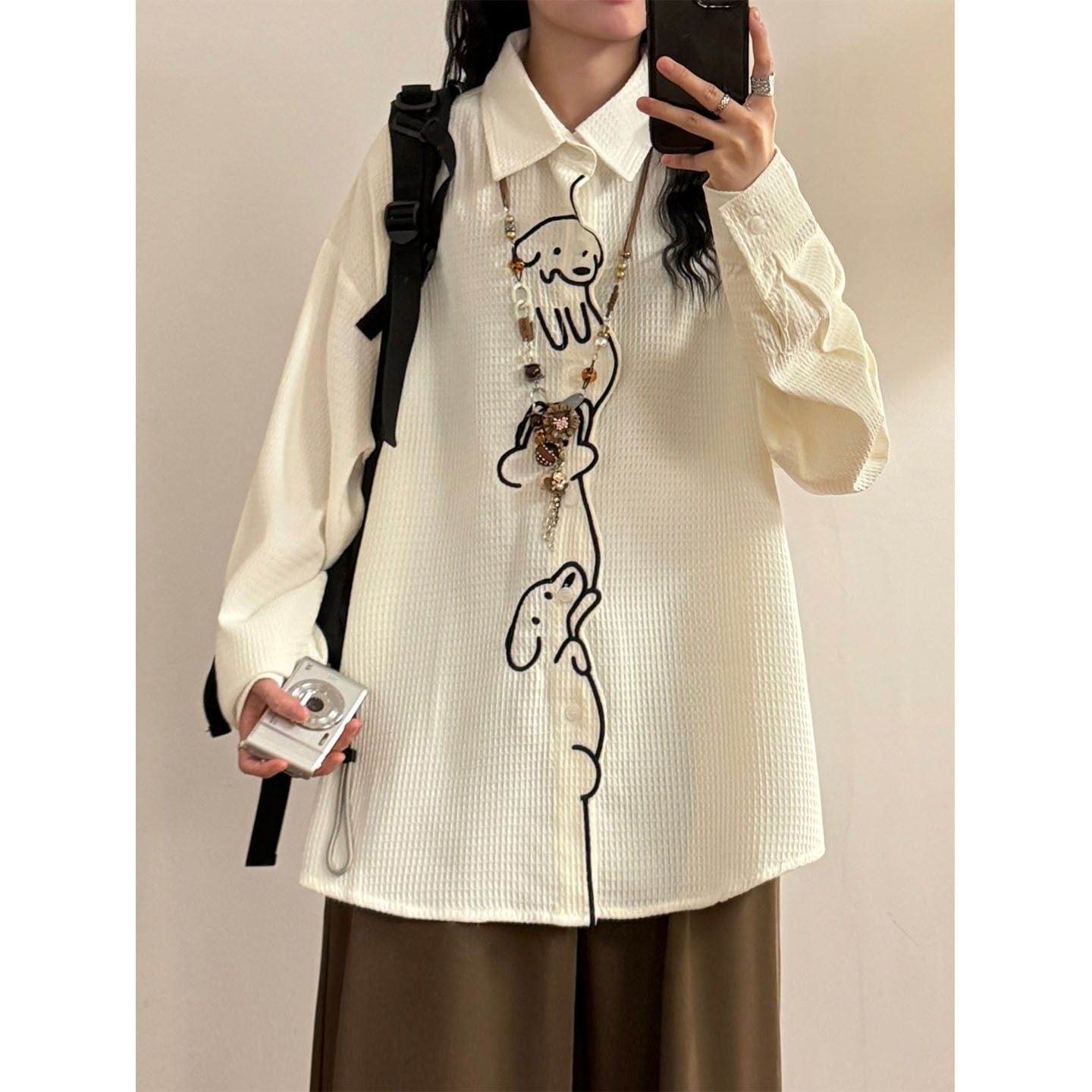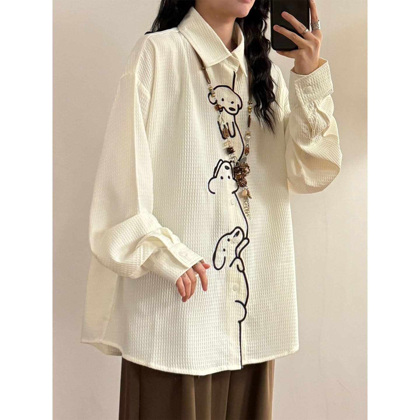 ♥ワンポイントの刺繡が愛らしい!【UATONLINEシリーズ】★シャツ★ ユニセックス トップス 長袖シャツ