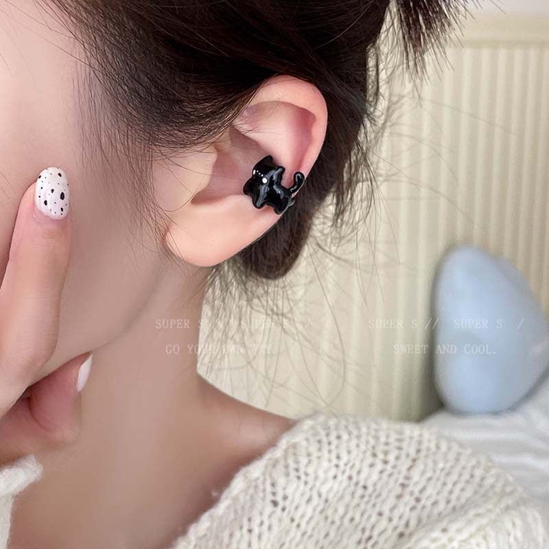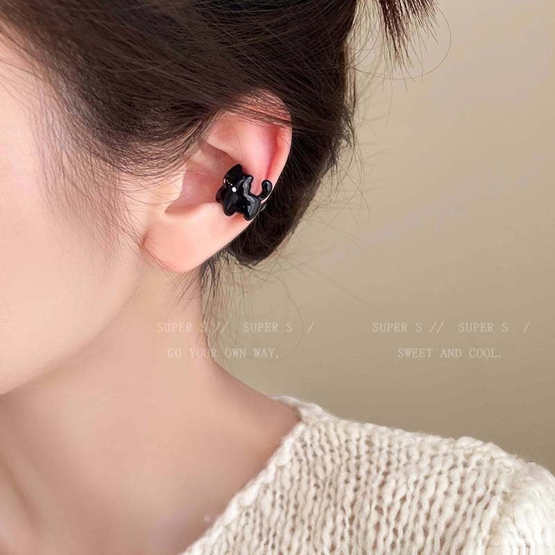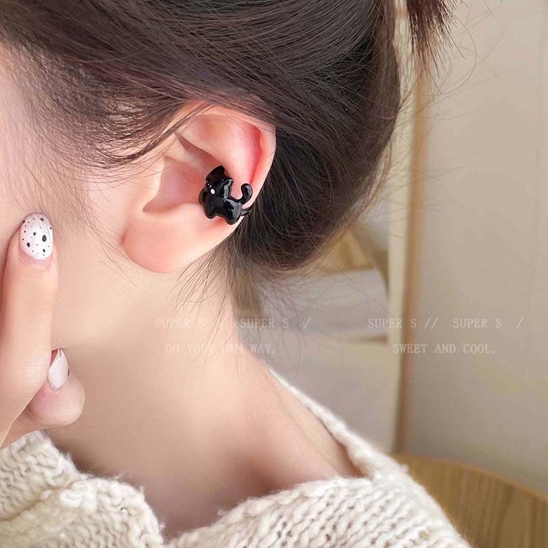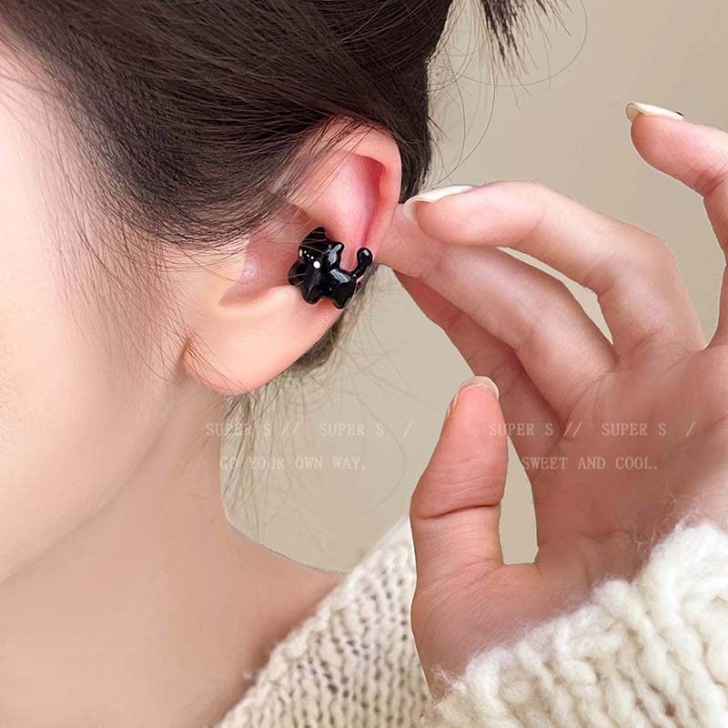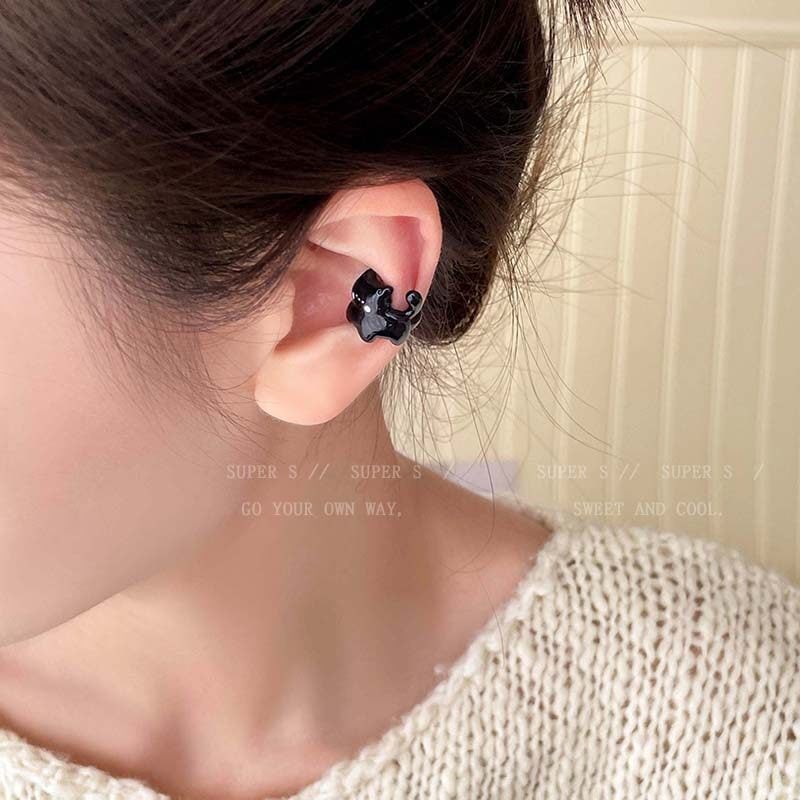 ♥小さな黒猫!【SUPER Sシリーズ】★耳飾り★ イヤーカフ 左耳 1個 アクセサリー レディース 猫 ねこ ネコ