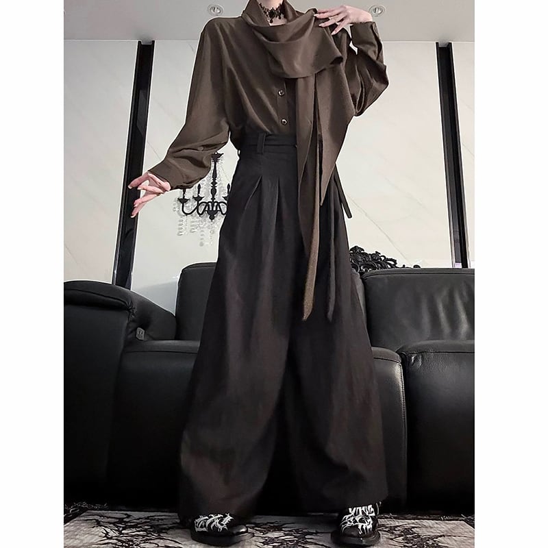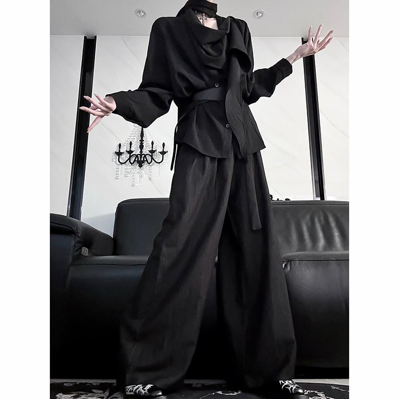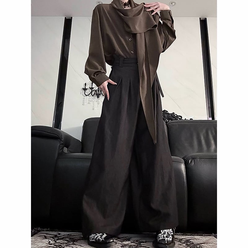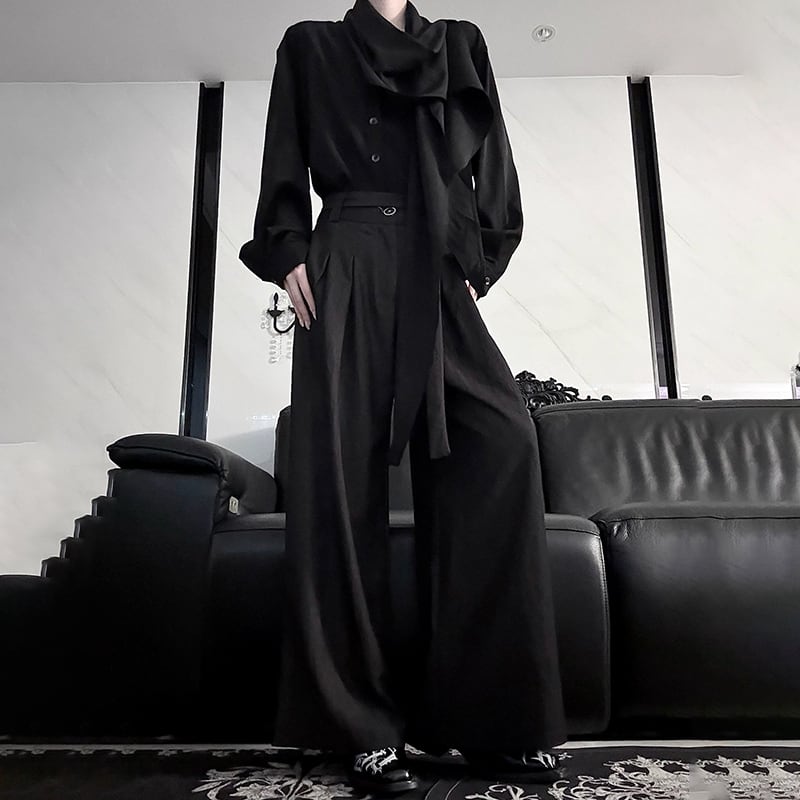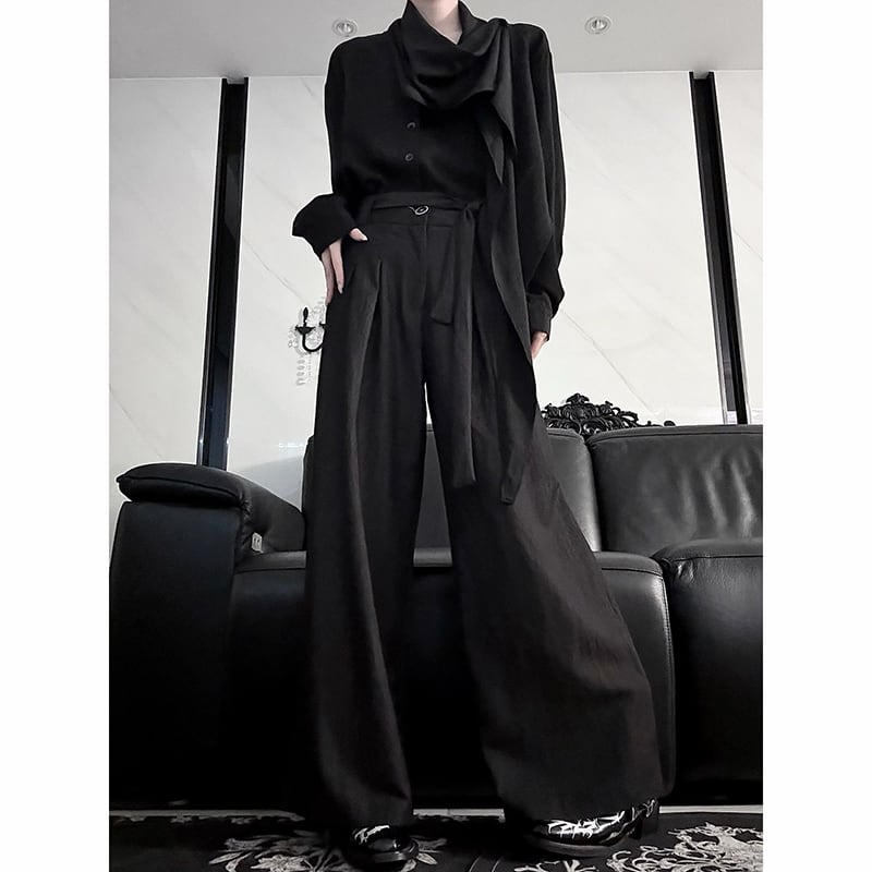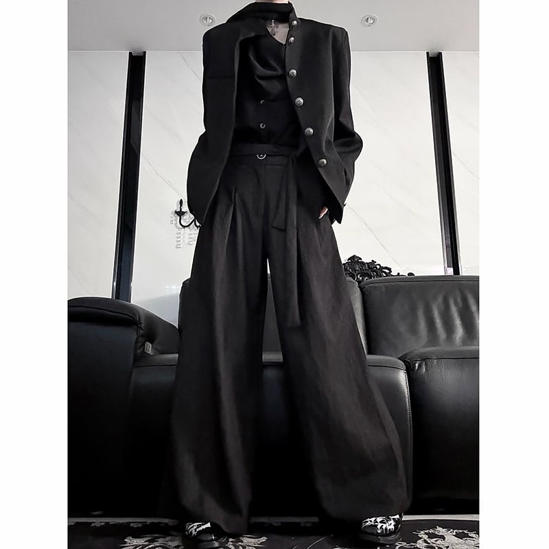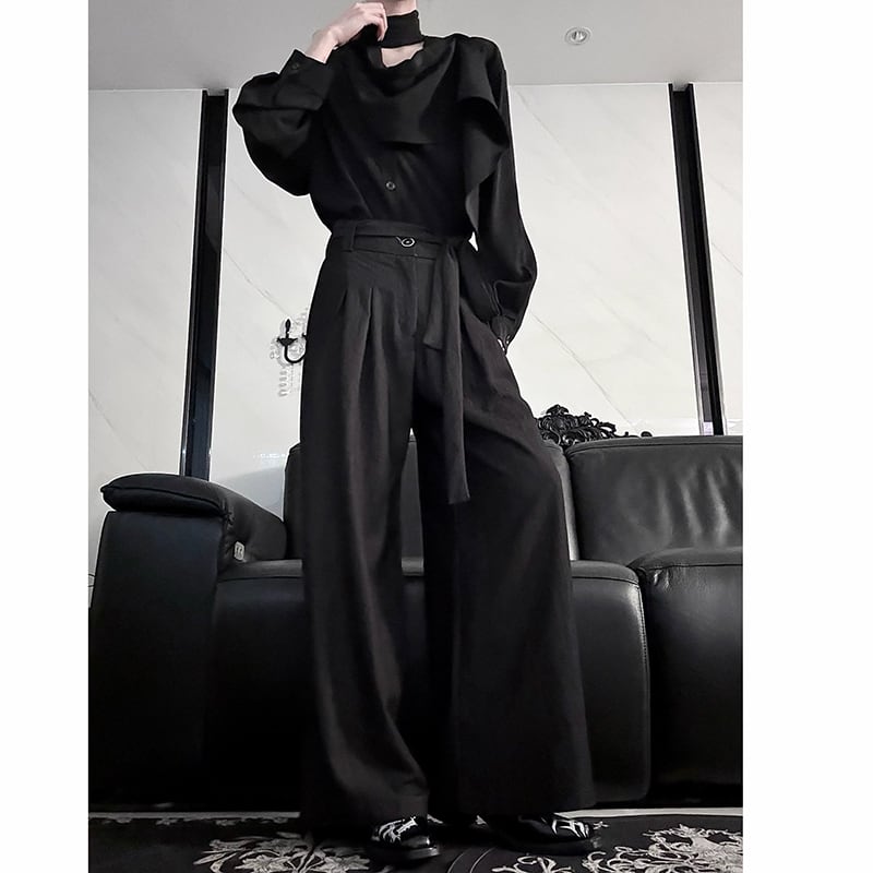 ♥かっこいいズボン!【Aontシリーズ】★カジュアルパンツ★ ユニセックス ズボン ハイウエスト ブラック 黒い ユニックス