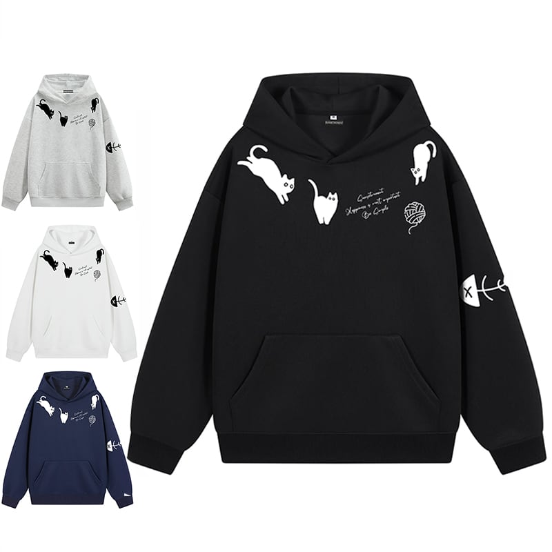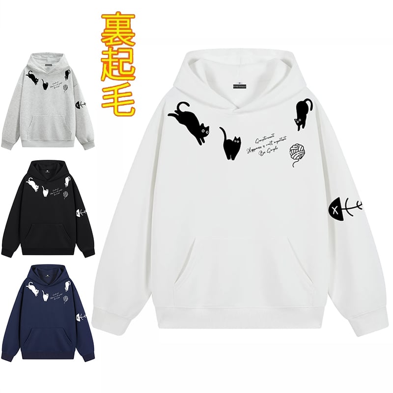 ♥にゃんとも可愛い!【ImcTLシリーズ】★パーカー★ 裏起毛 ユニセックス 4color トップス 猫 猫柄 ネコ 黒 白 青