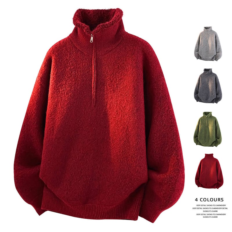 ❆ハーフジップが決める、新しい佇まい!【WSシリーズ】★セーター★ ユニセックス 4color ニットトップス 厚て シンプル