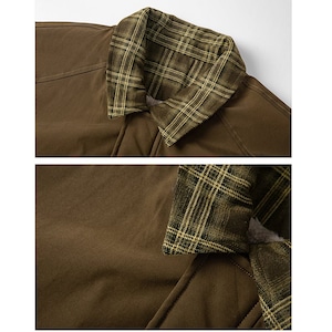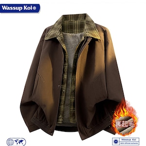 ♥裏起毛POLOジャケット!【WSシリーズ】★ジャケット★ 裏起毛 冬用コート ユニセックス 2color アウター 大きいサイズ フェイクレイヤード チェック柄 POLOネック