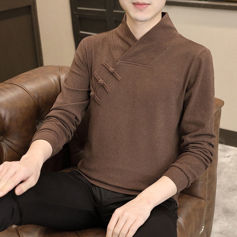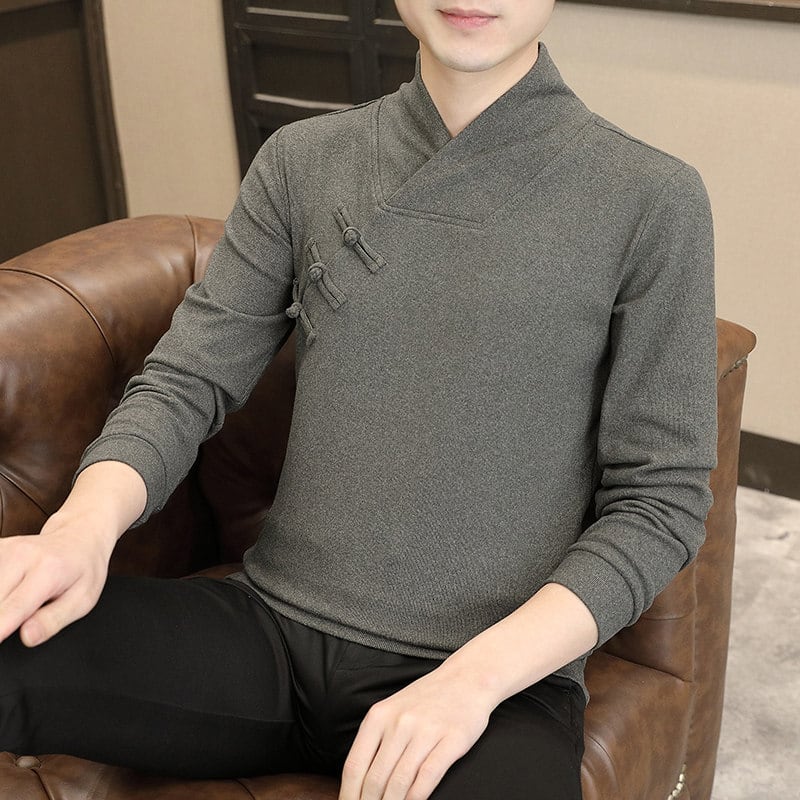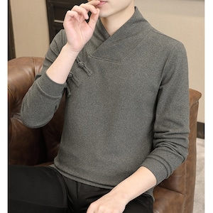 ♥Vネックチャイナボタントップス!【FNTシリーズ】★チャイナ風トップス★ ユニセックス 6color Tシャツ チャイナボタン Vネック