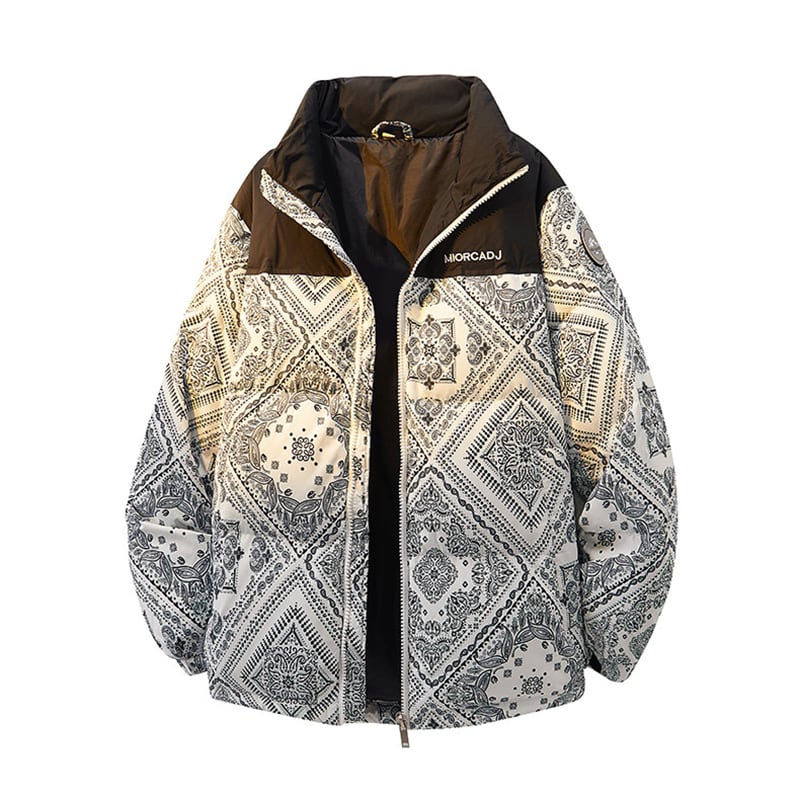 ♥ペイズリー柄防寒コート!【WSシリーズ】★冬用コート★ ユニセックス 2color アウター 切り替え ペイズリー柄 スタンドネック