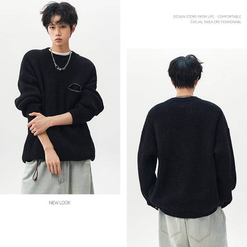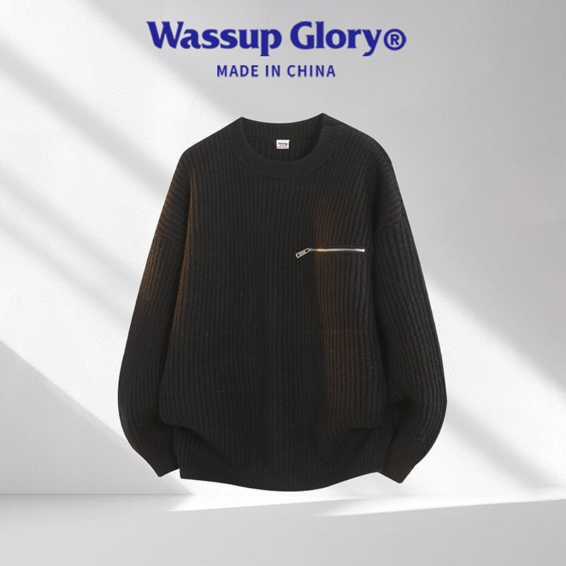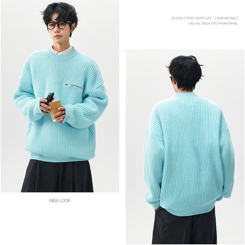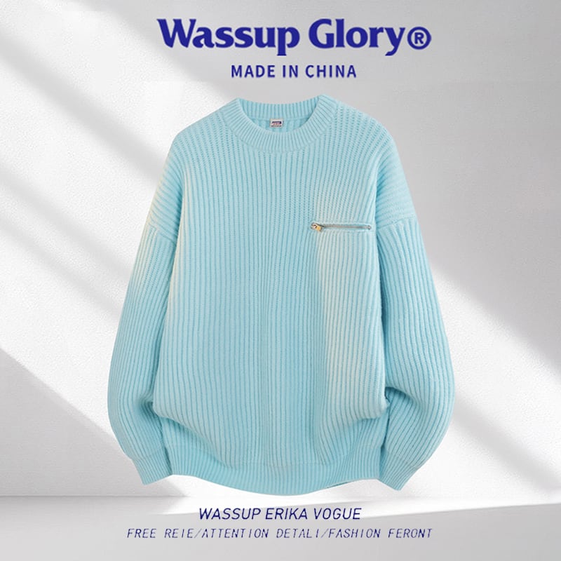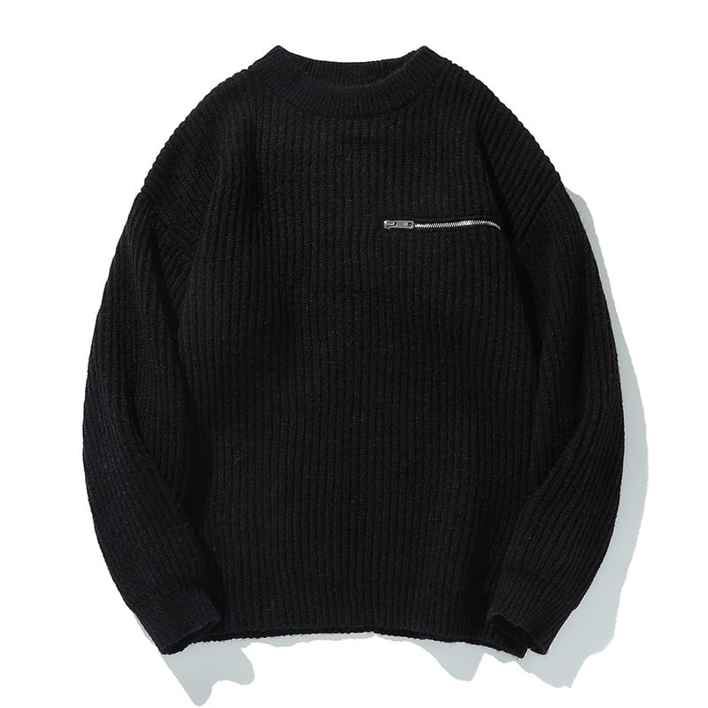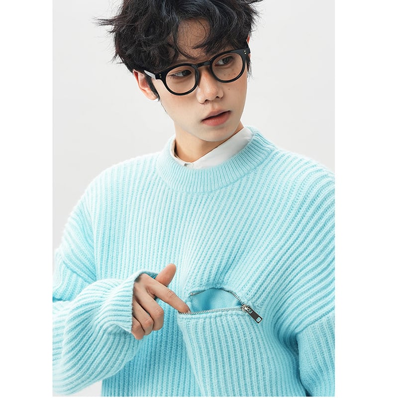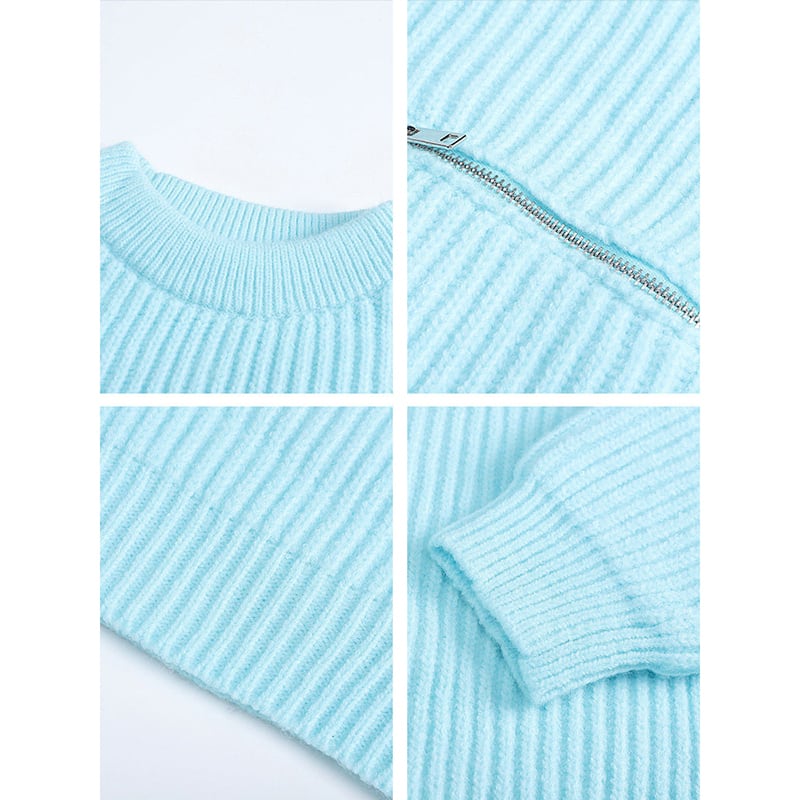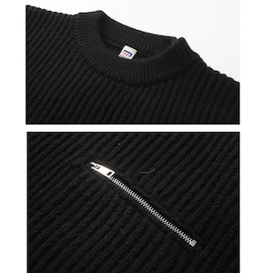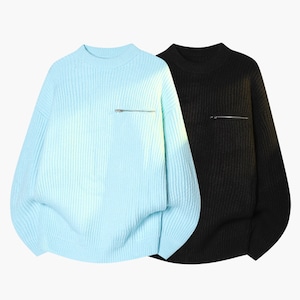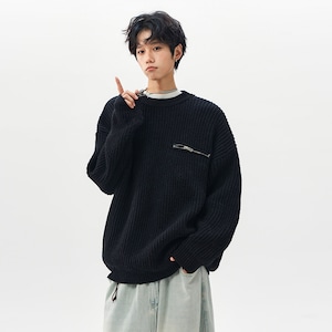 ♥シンプルで、使える一枚!【WSシリーズ】★セーター★ ユニセックス 2color ニットトップス ジッパー飾り 青 黒