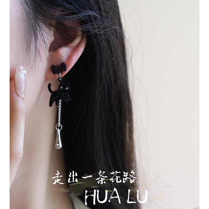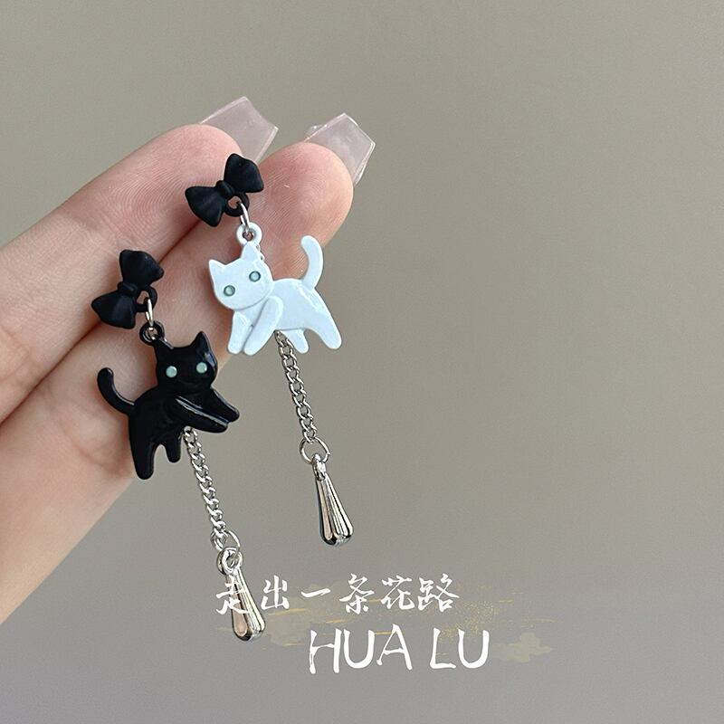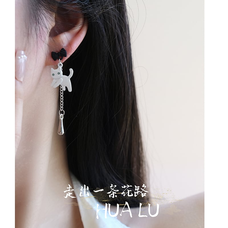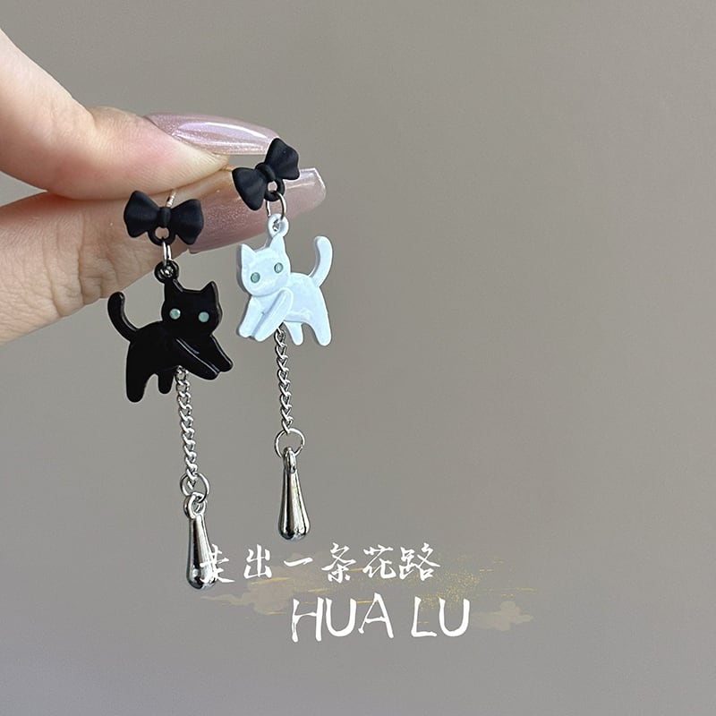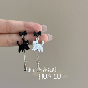 ♥黒白猫非対称ピアス!【HUALUシリーズ】★耳飾り★ ピアス 飾り物 アクセサリー レディース 白猫 黒猫 猫 猫柄 ねこ