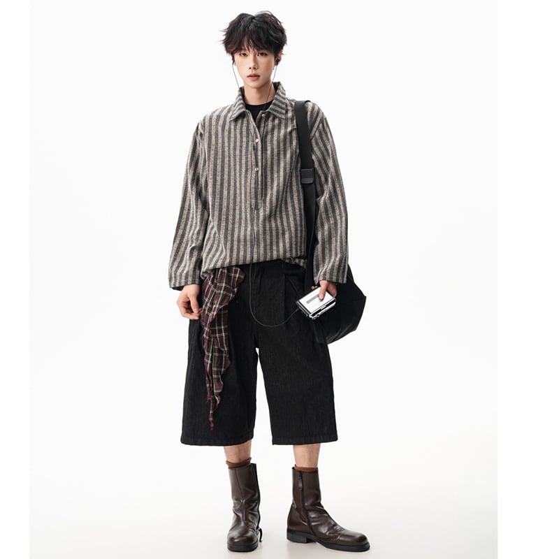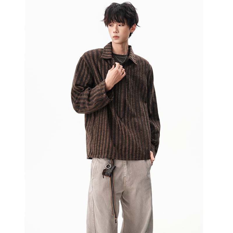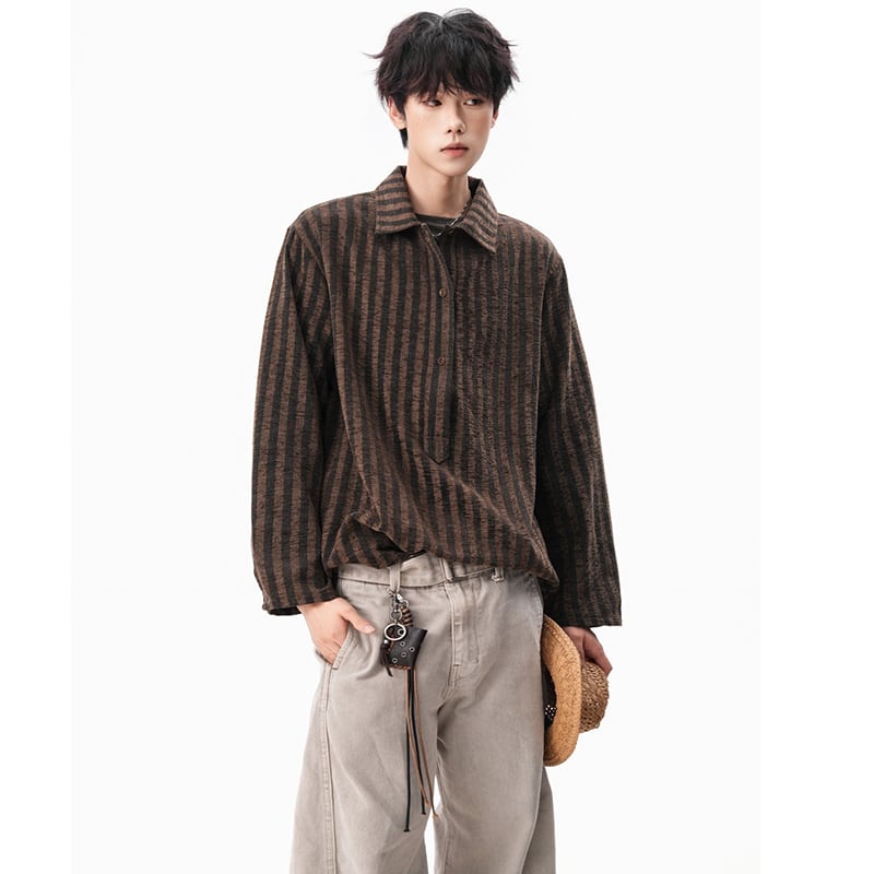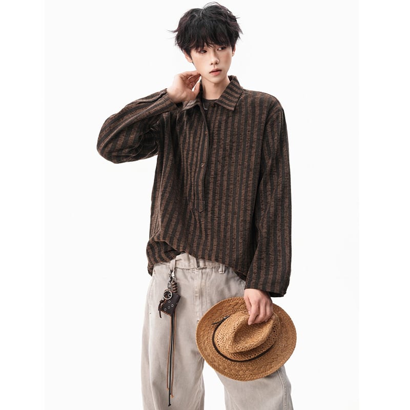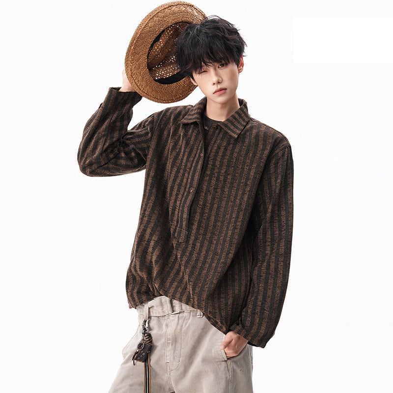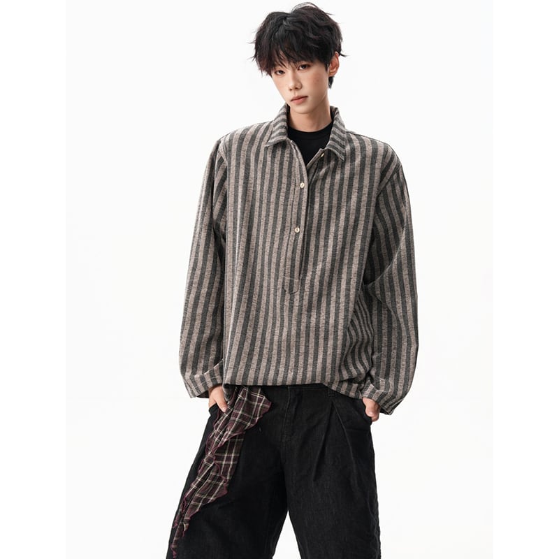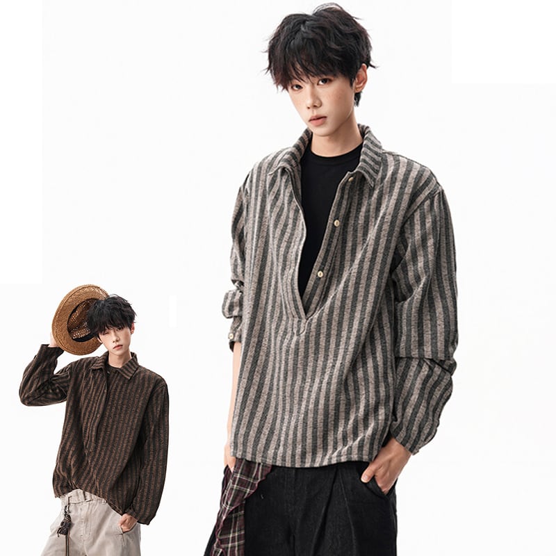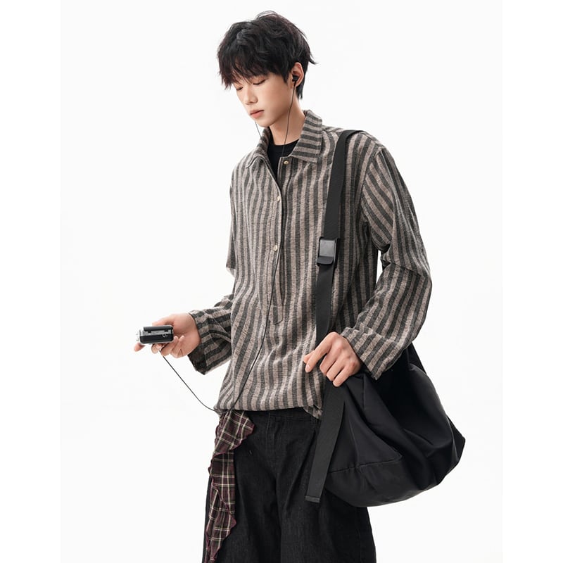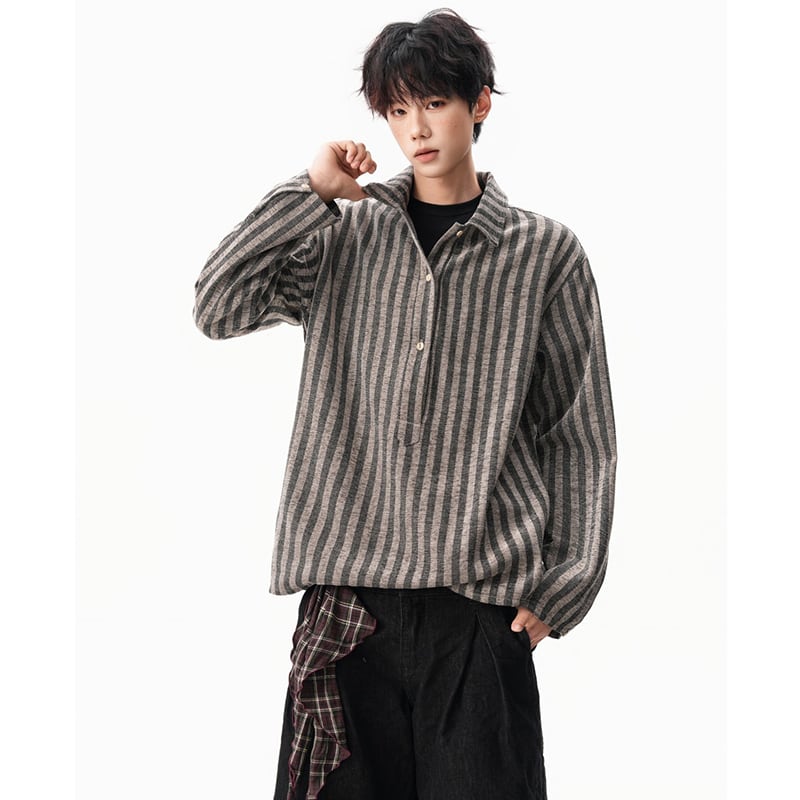 ♥カジュアルにも少しこなれたい日に!【GraceRubシリーズ】★シャツ★ ユニセックス 2color トップス 長袖シャツ 縦縞 縞模様