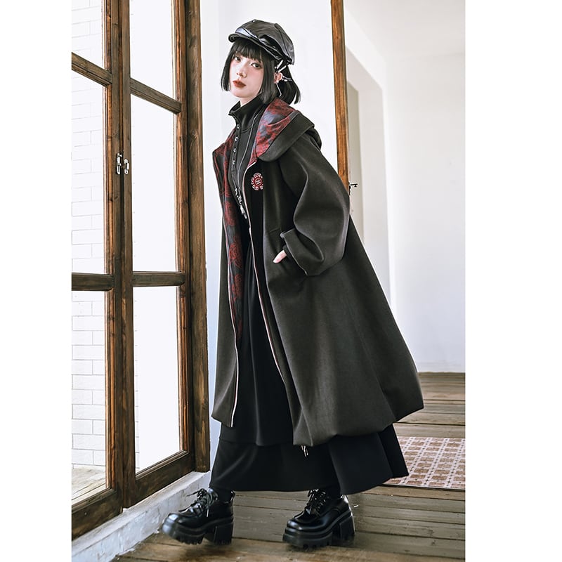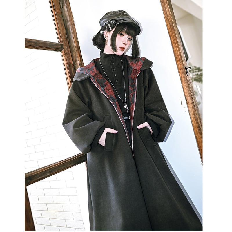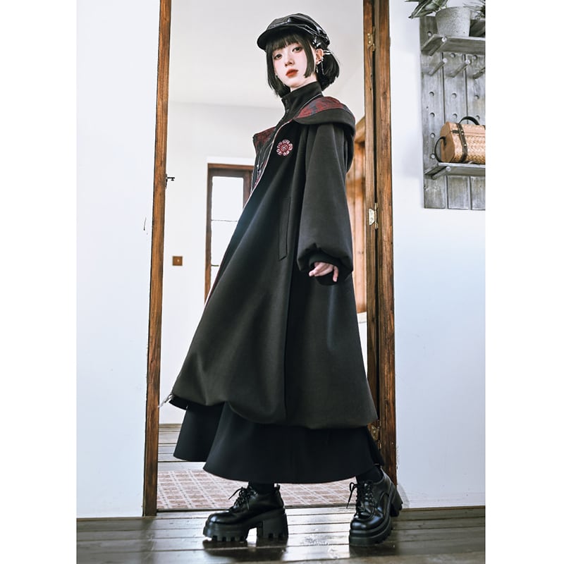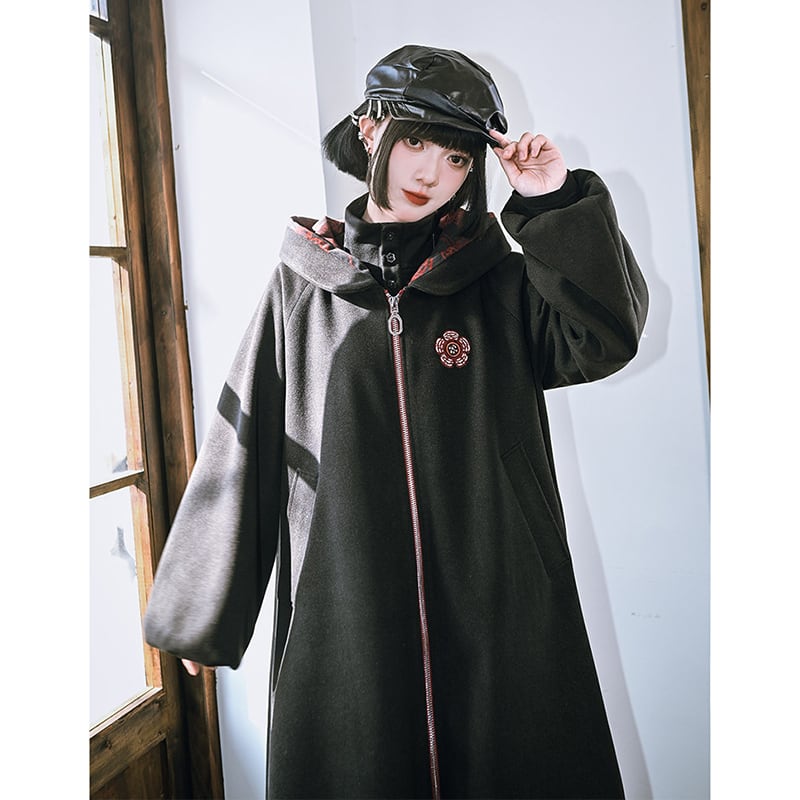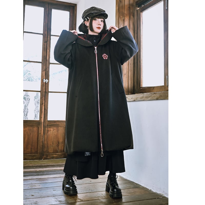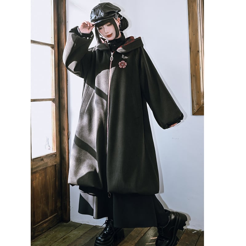 ♥刺繍付きフード&保温フリース!【古怪舍---大王花シリーズ】★チャイナ風コート★ 裏起毛 アウター coat
