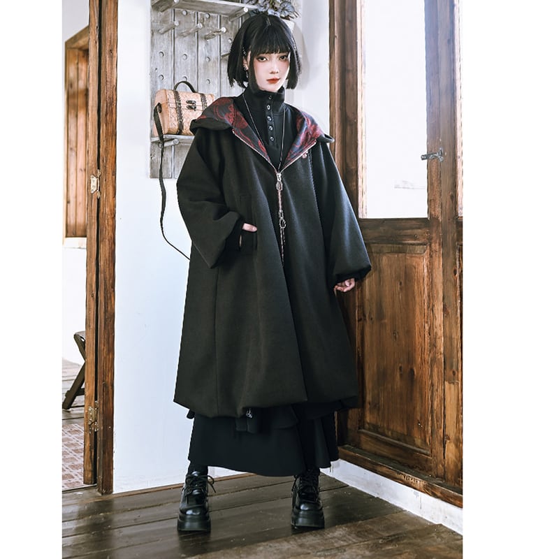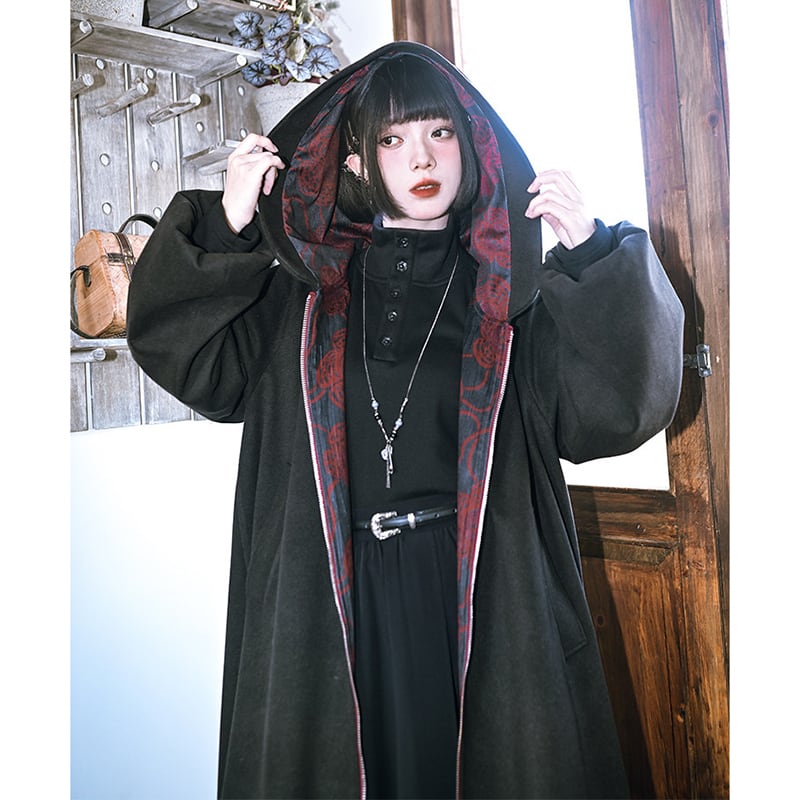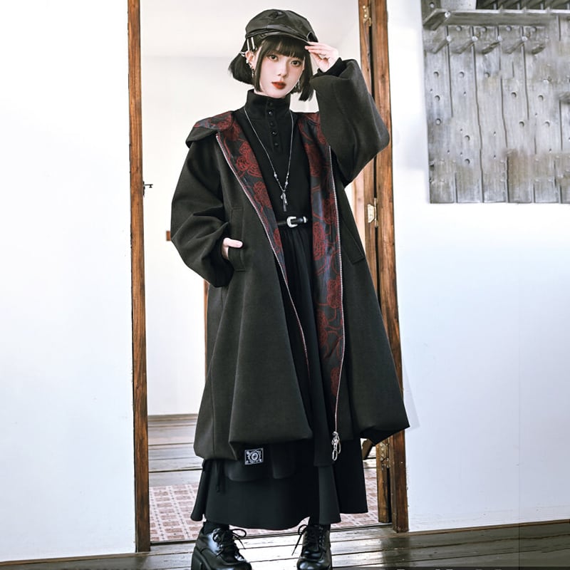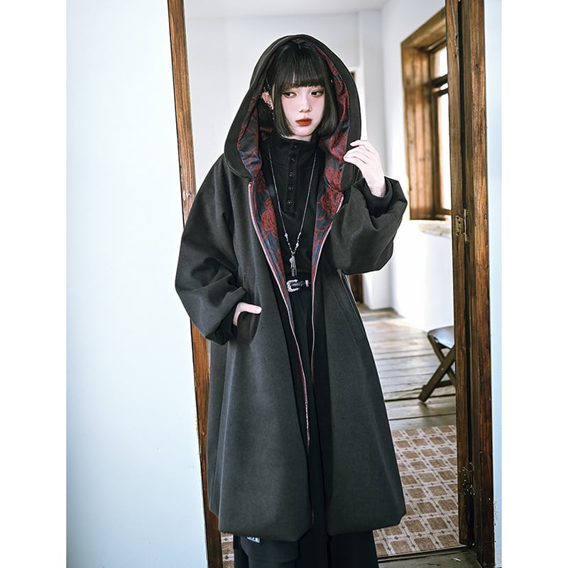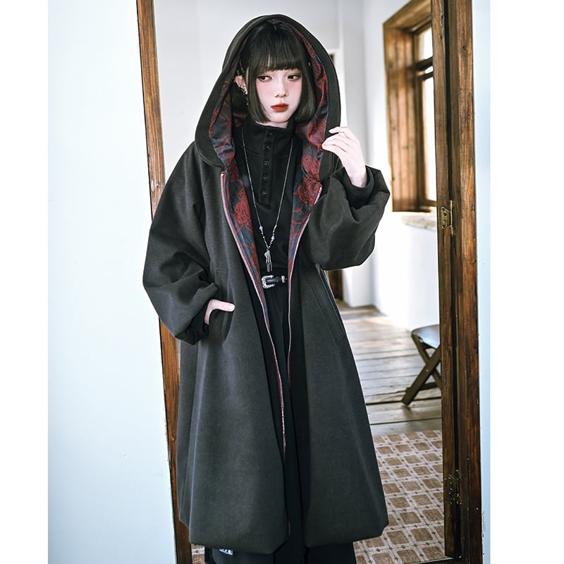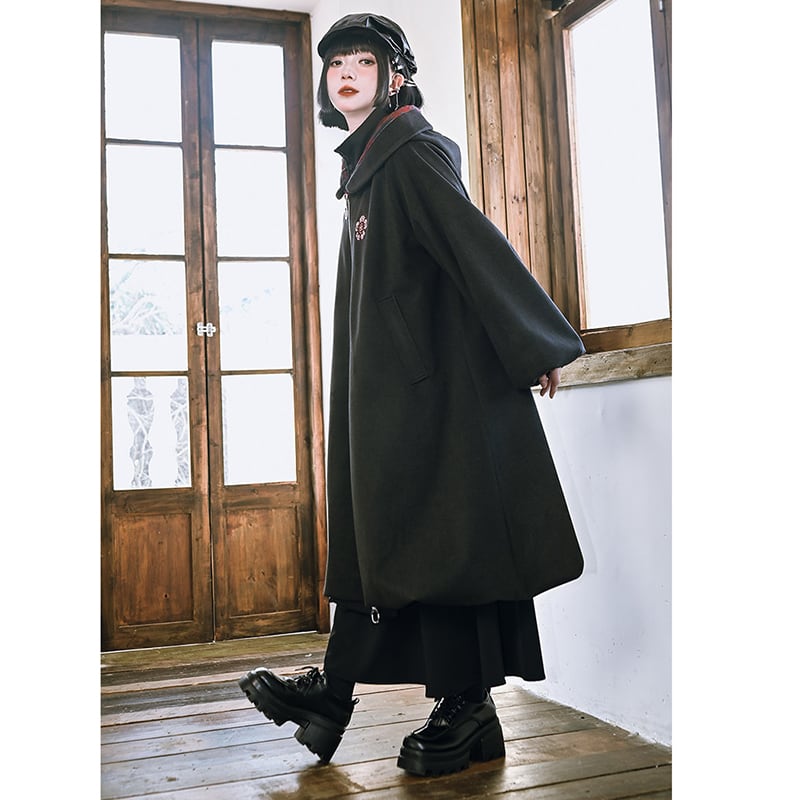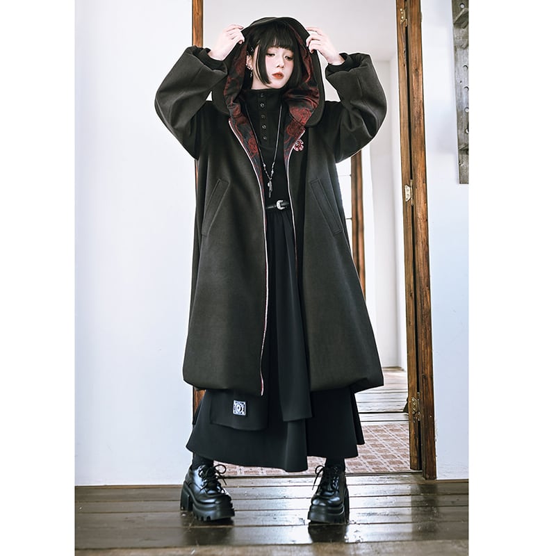 ♥刺繍付きフード&保温フリース!【古怪舍---大王花シリーズ】★チャイナ風コート★ 裏起毛 アウター coat