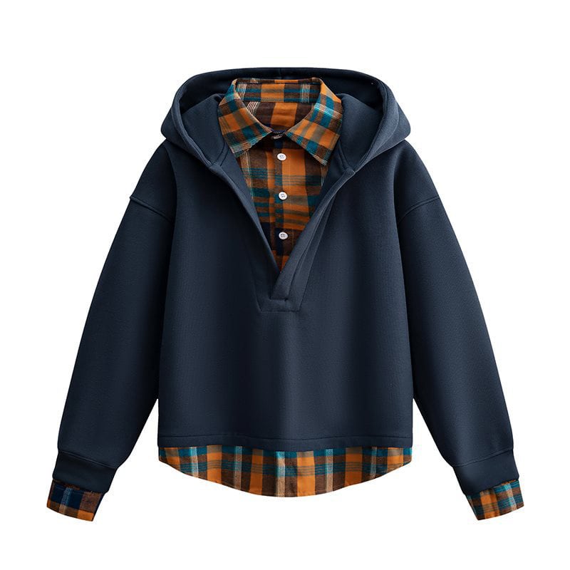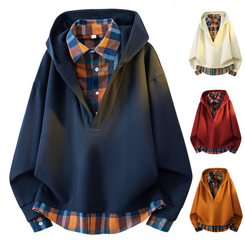 ♥シャツパーカー!【WSシリーズ】★パーカー★ ユニセックス 4color トップス フェイクレイヤード チェック柄