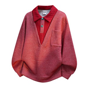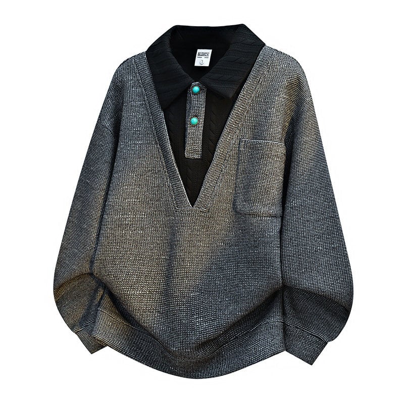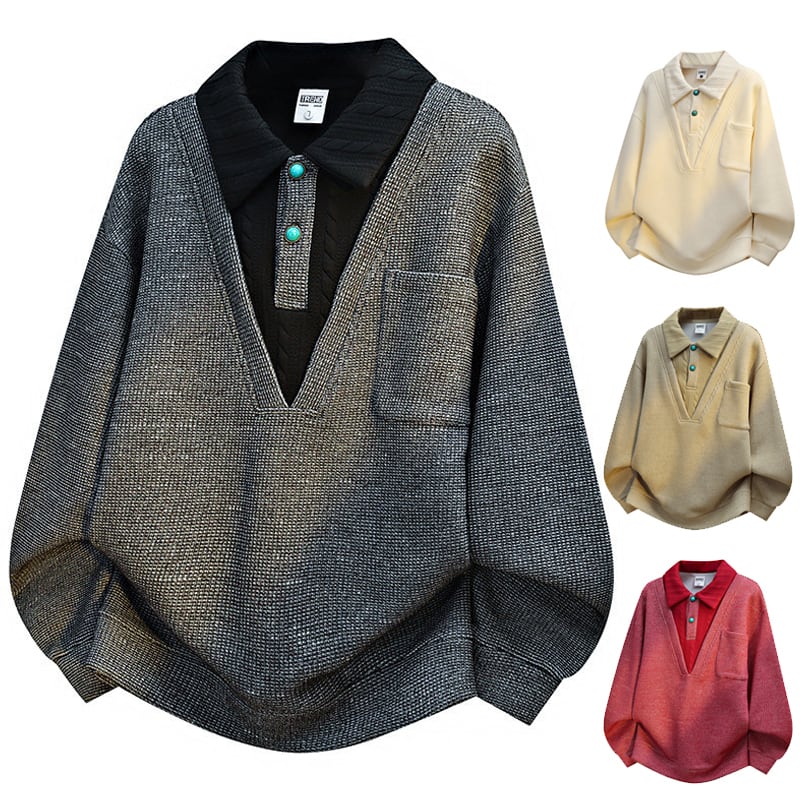♥フェイクレイヤードトップス!【WSシリーズ】★トップス★ ユニセックス 4color POLOネック 大きいサイズ 配色