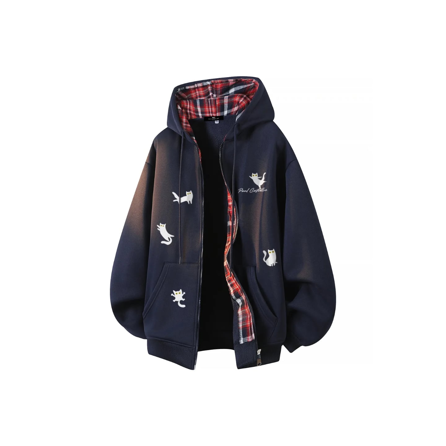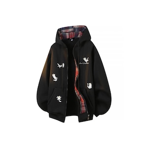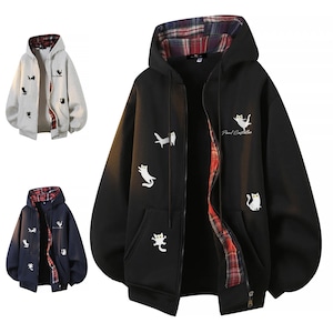♥裏起毛猫柄アウター!【ImcTLシリーズ】★アウター★ 裏起毛 パーカー ジャンプパーカー ユニセックス 3color 猫柄 ねこ ネコ