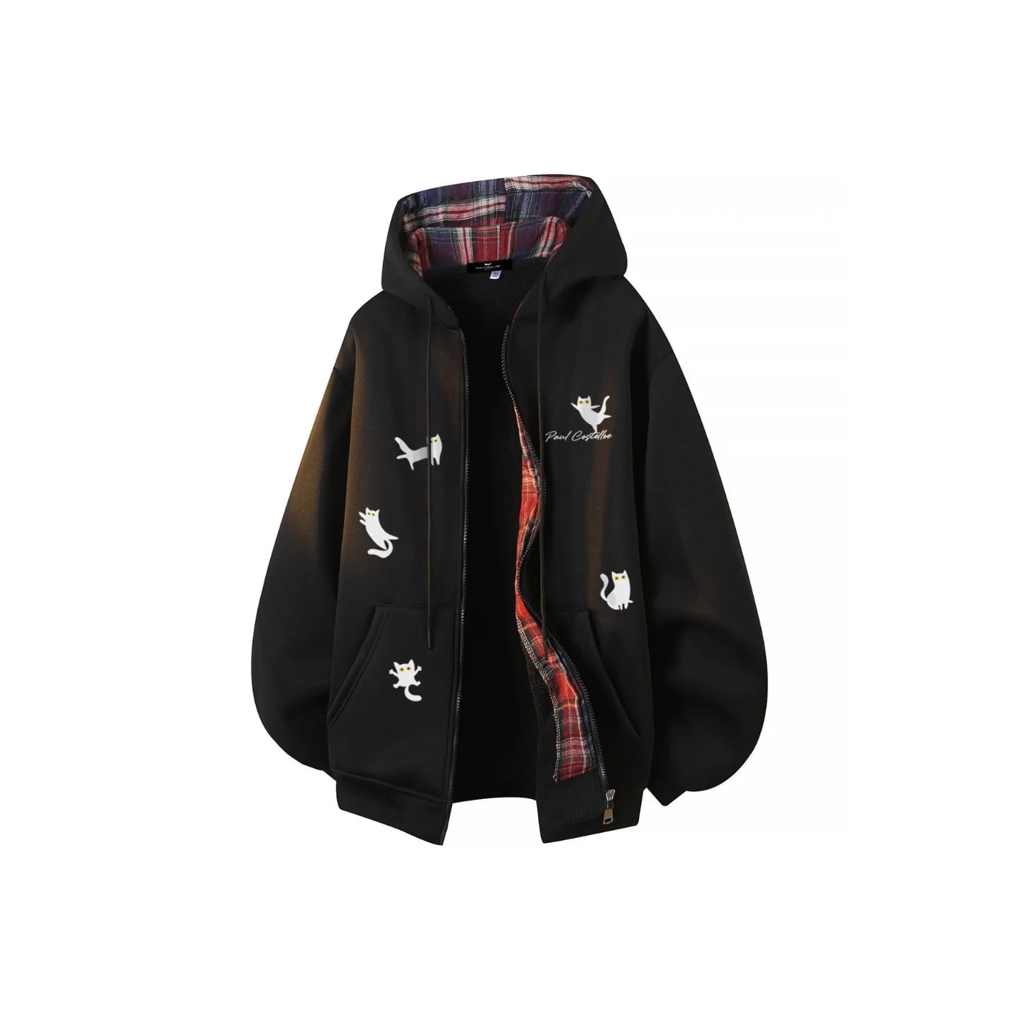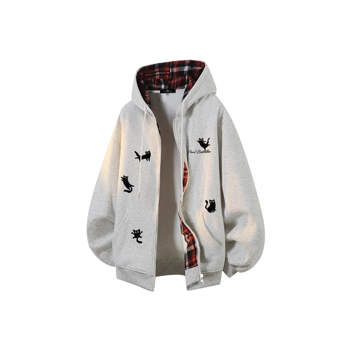 ♥猫プリント×チェック!【ImcTLシリーズ】★アウター★ パーカー ジャンプパーカー ユニセックス 3color 猫柄 ねこ ネコ
