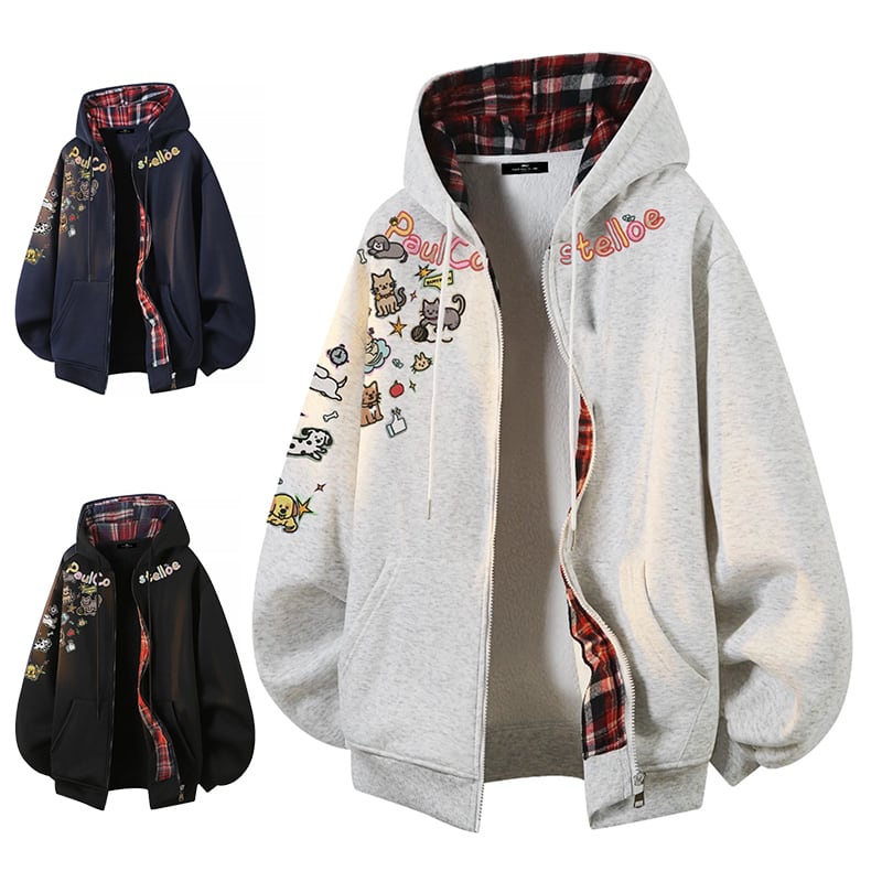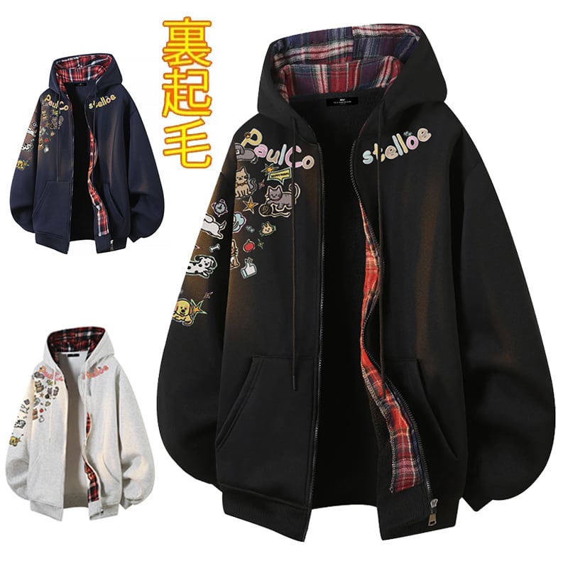 ♥気まぐれ猫と、アメ高街!【ImcTLシリーズ】★アウター★ 裏起毛 パーカー ジャンプパーカー ユニセックス 3color 猫柄 ねこ ネコ
