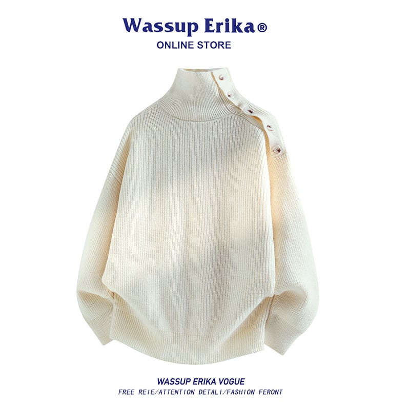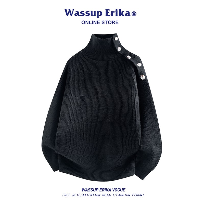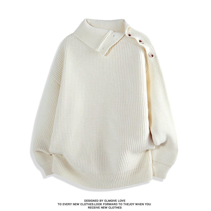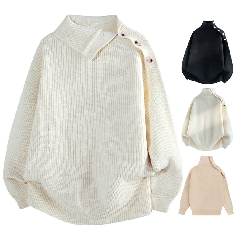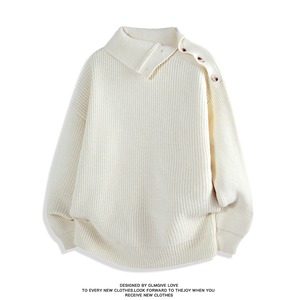 ♥首元と肩先の、絶妙な演出!【WSシリーズ】★セーター★ ユニセックス 3color ニットトップス スタンドネック