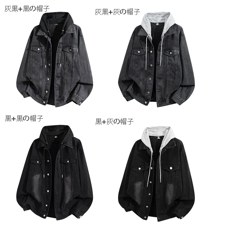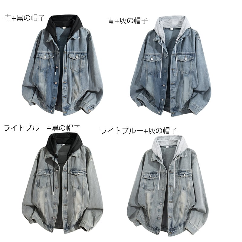 ♥デニムに、フードをプラス!【WSシリーズ】★ジャケット★ ユニセックス 4color アウター デニムジャケット カジュアル 黒 青