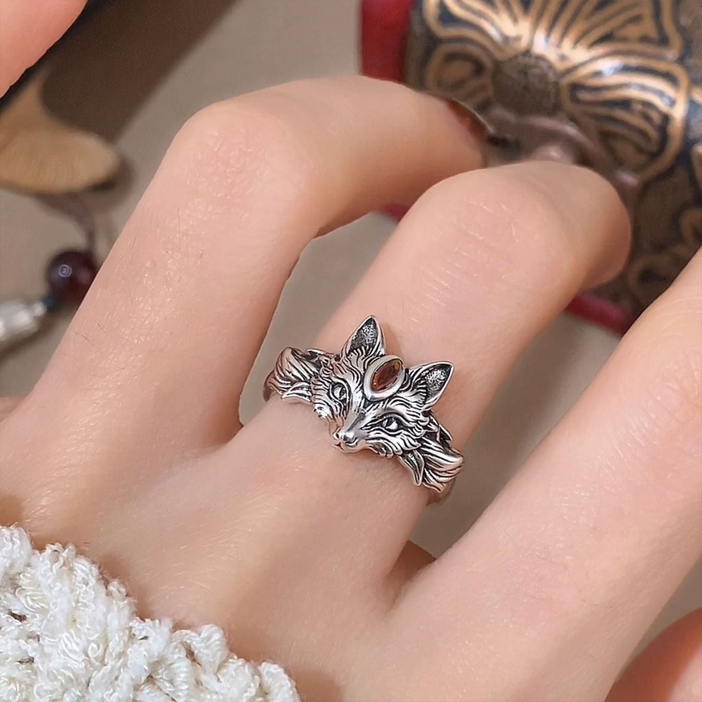 ✿狐の霊気、指先に宿る!【XMLシリーズ】★チャイナ風飾り物★ 指輪 アクセサリー 開け口調整可 小物 狐 きつね キツネ