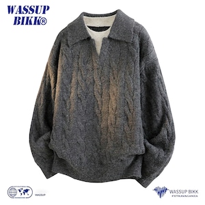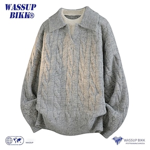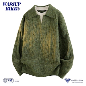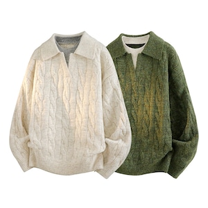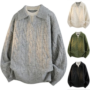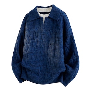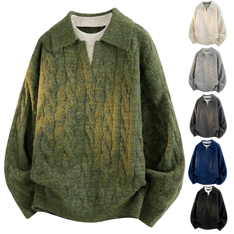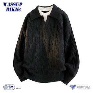 ♥重ね着風ニット!【WSシリーズ】★セーター★ ユニセックス 6color ニットトップス POLOネック 黒 青 緑 灰 フェイクレイヤード