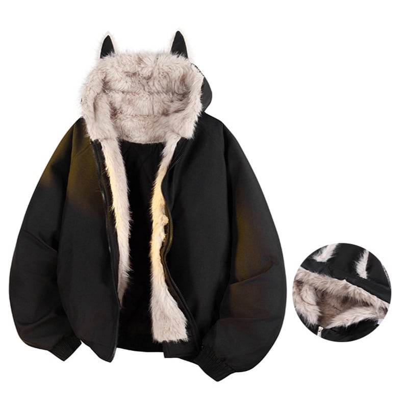 ☄猫耳フード防寒コート!【WSシリーズ】★綿入れコート★ ユニセックス 2color 冬用コート カジュアル 暖か