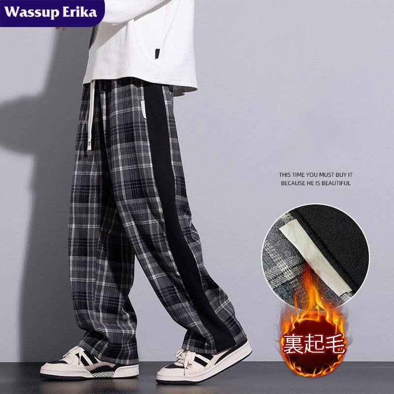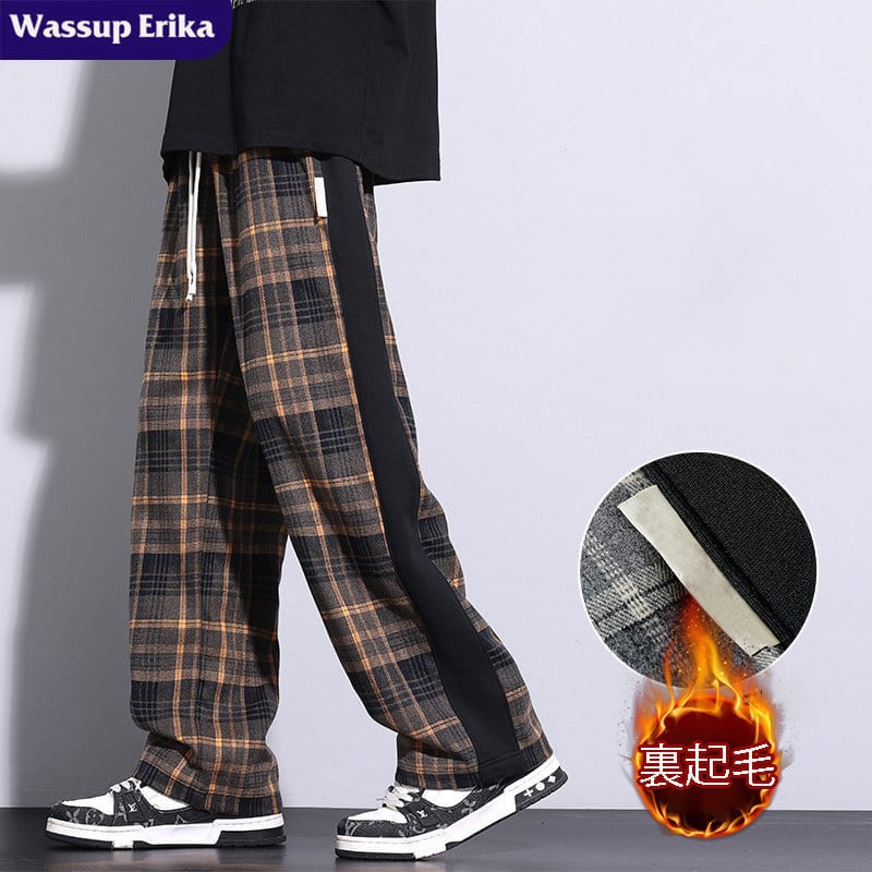 ♥裏起毛チェック柄ズボン!【WASSUP ERIKAシリーズ】★カジュアルパンツ★ 裏起毛 ユニセックス 2color チェック柄 大きいサイズ レトロ
