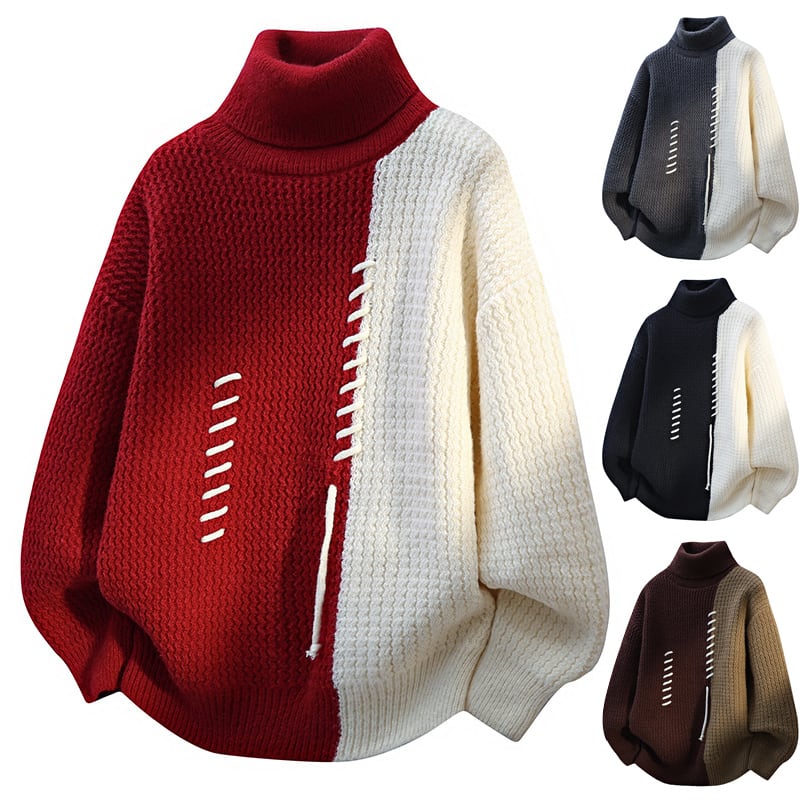 ♥色が、遊ぶ。形が、休む! 【WSシリーズ】★セーター★ ユニセックス 4color ニットトップス 配色 ハイネック 赤 灰 黒
