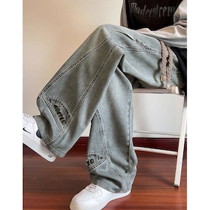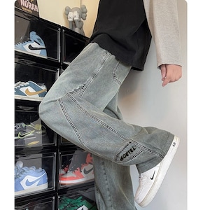 ♥刺繍入りズボン!【WSシリーズ】★ズボン★ 3color ユニセックス ボトムス ウエストゴム 大きいサイズ 黒 青