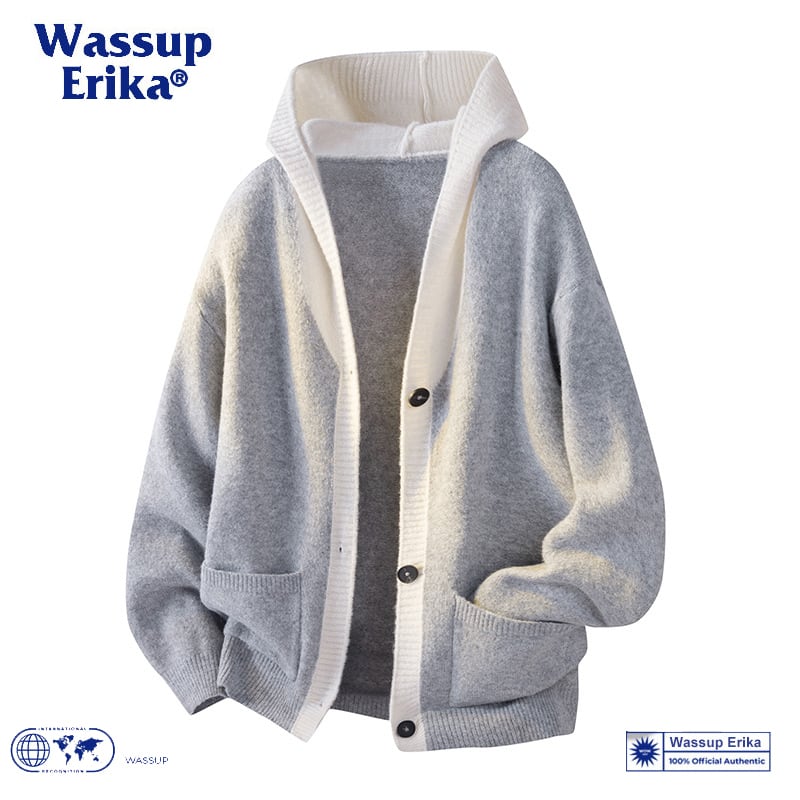 ♥フード付きの安心、オンムオフの自由! 【WSシリーズ】★カーディガン★ ユニセックス セーター 2color ニットトップス 配色