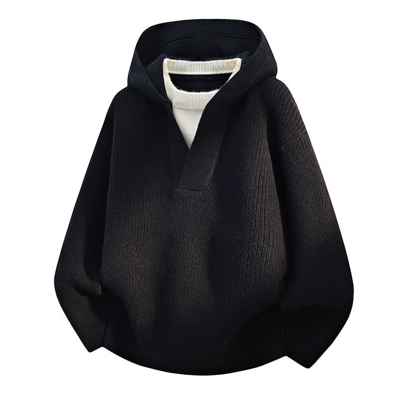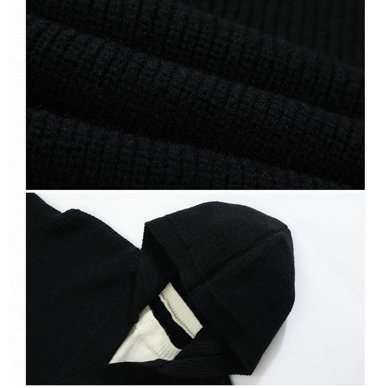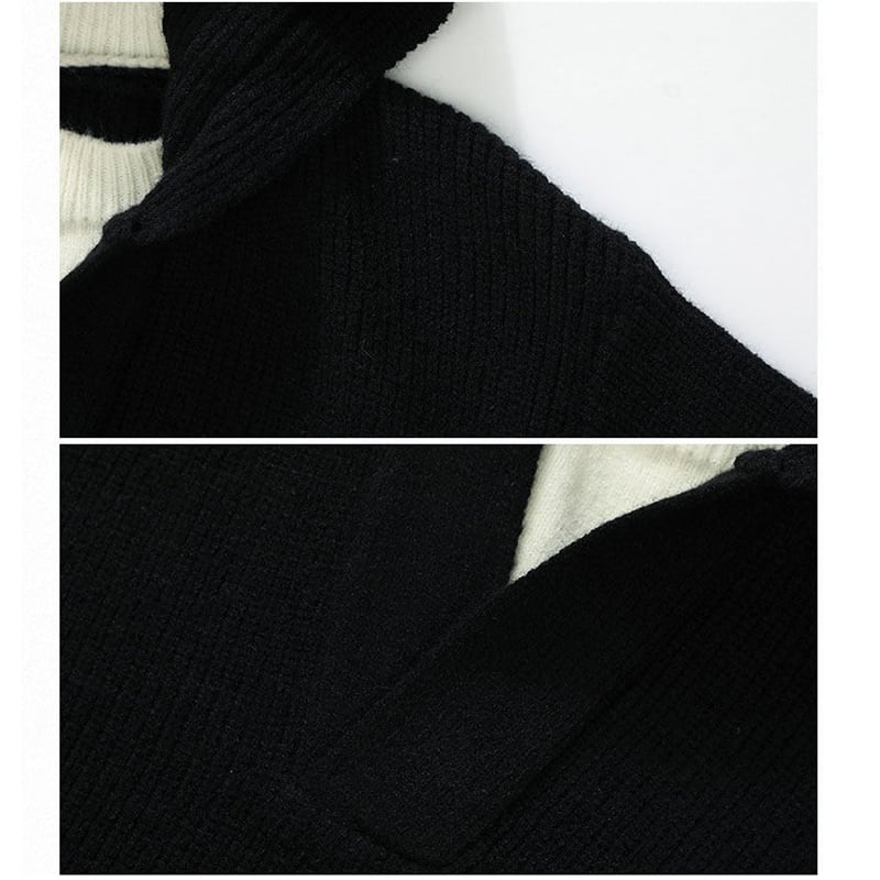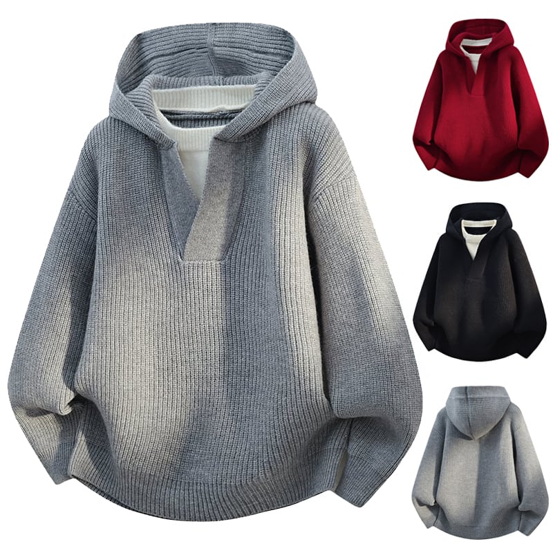 ♥Vネックニットパーカー!【WSシリーズ】★セーター★ ユニセックス 3color ニットトップス ニットパーカー 赤 黒 灰
