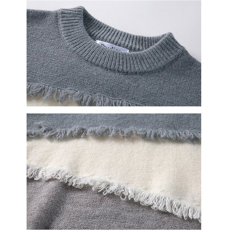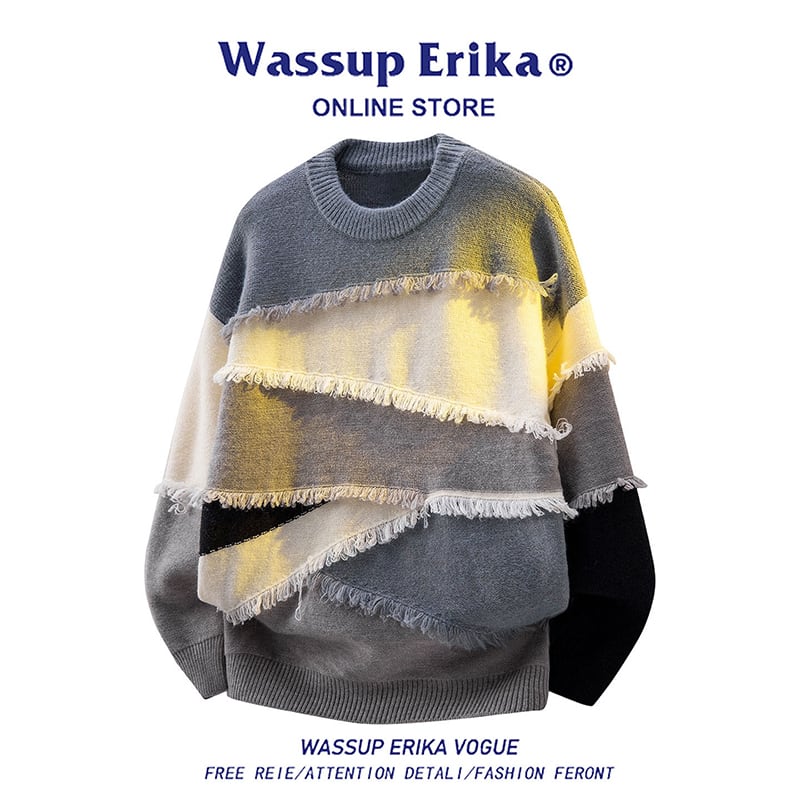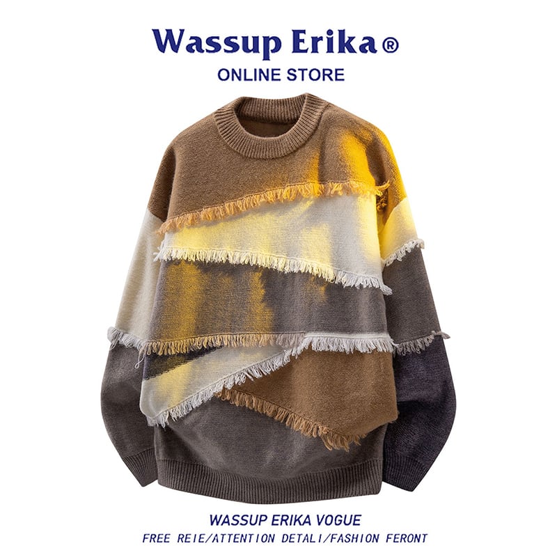 ♥秋冬の新たなカジュアルスタイル!【WSシリーズ】★セーター★ ユニセックス 2color ニットトップス 切り替え メンズ レディース 配色