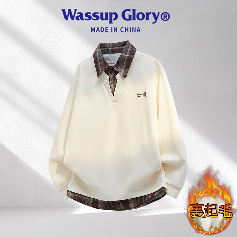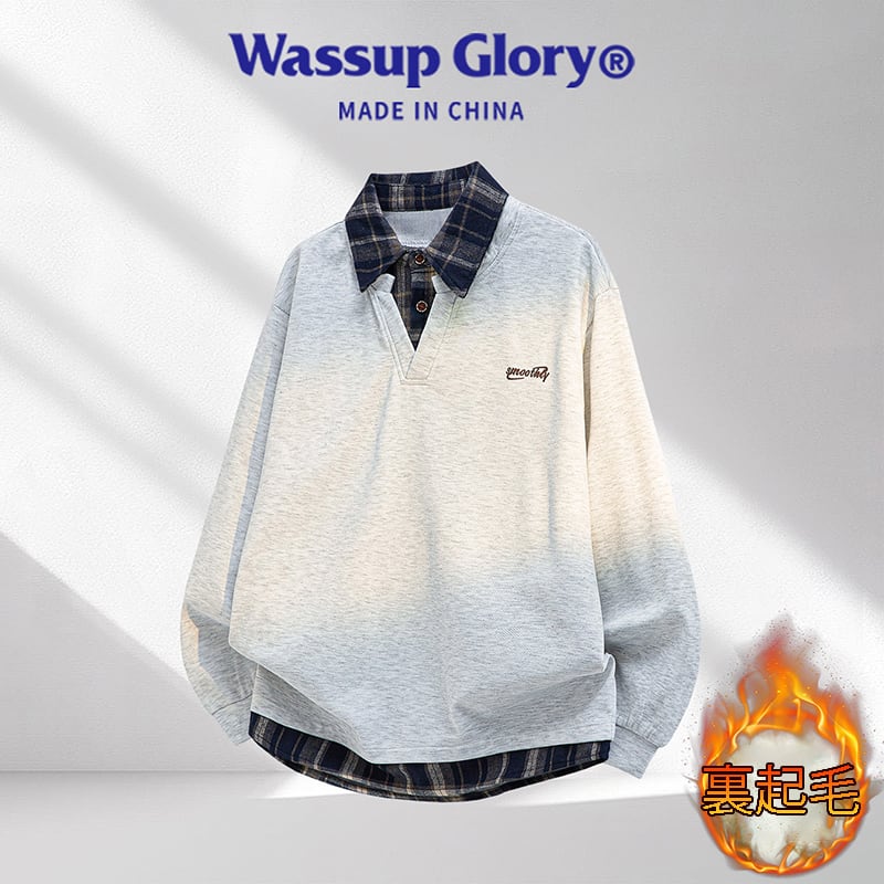 ♥裏起毛チェック柄POLOネック!【WSシリーズ】★POLOシャツ★ 裏起毛 ユニセックス 3color トップス POLOネック チェック柄