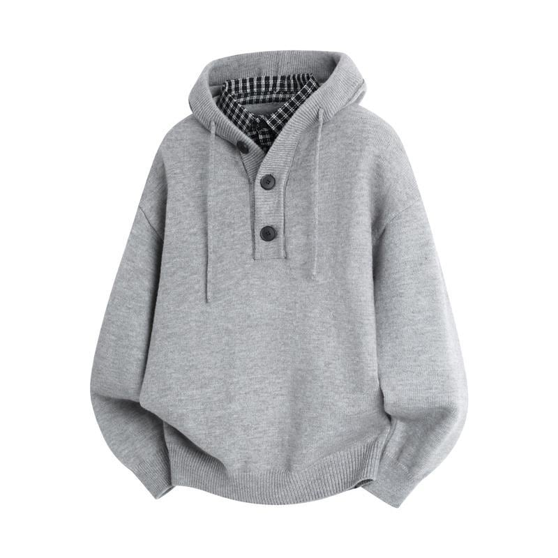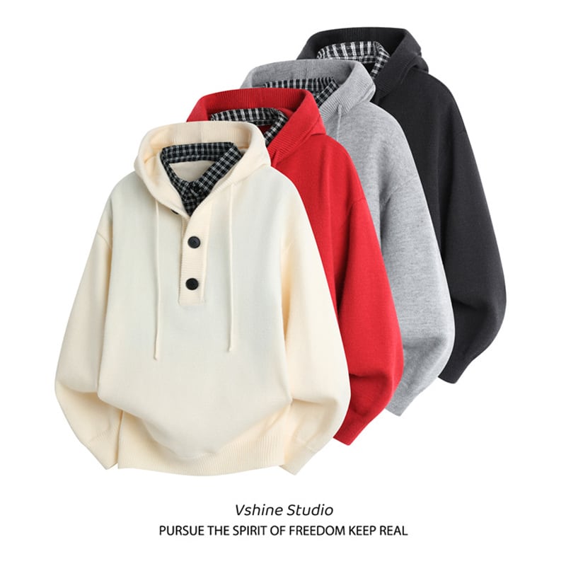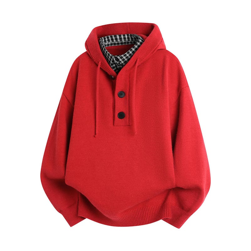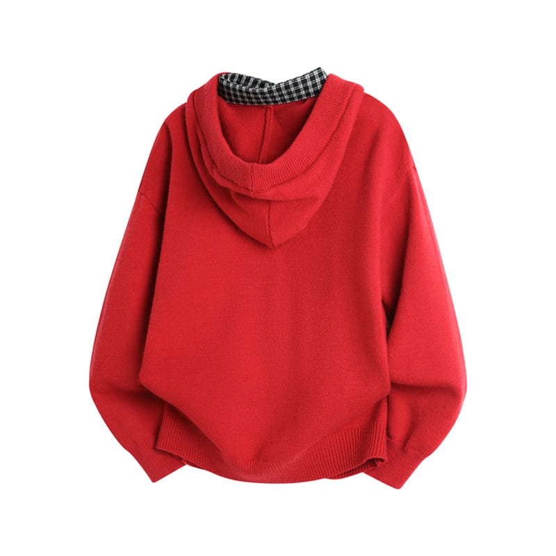 ♥二重の暖かさ、一枚の洒落!【WSシリーズ】★セーター★ ユニセックス 4color ニットトップス フェイクレイヤード チェック柄
