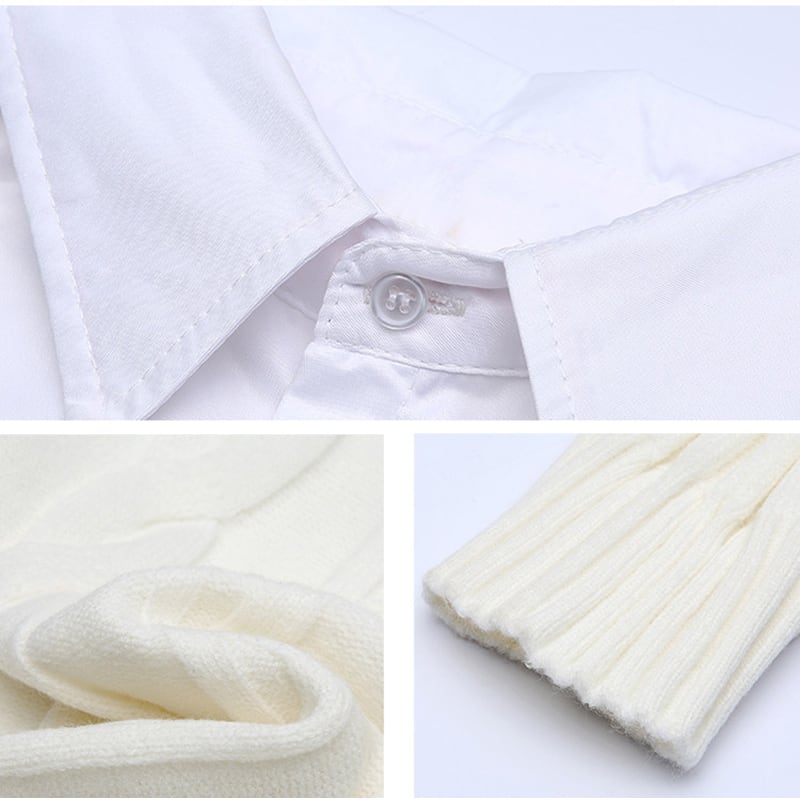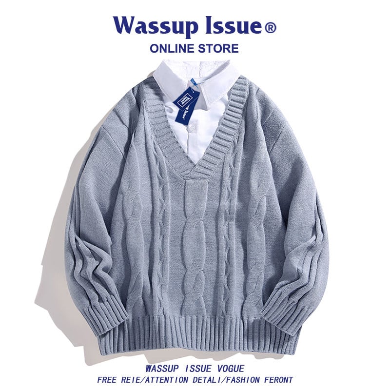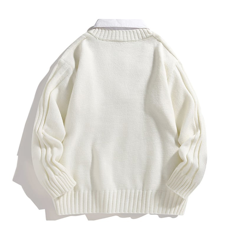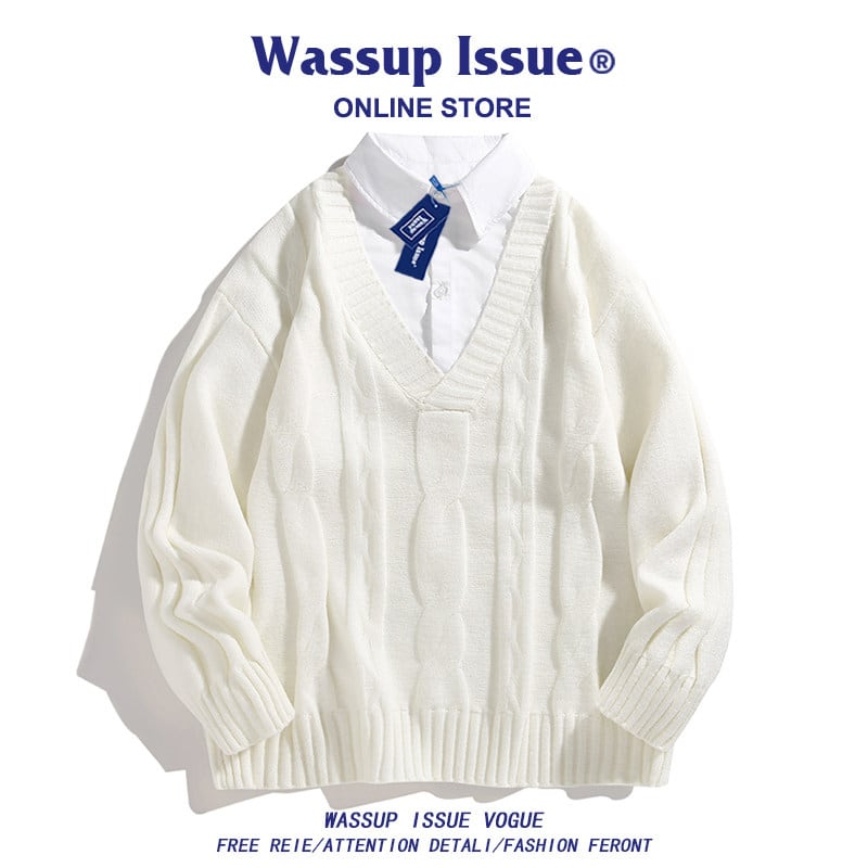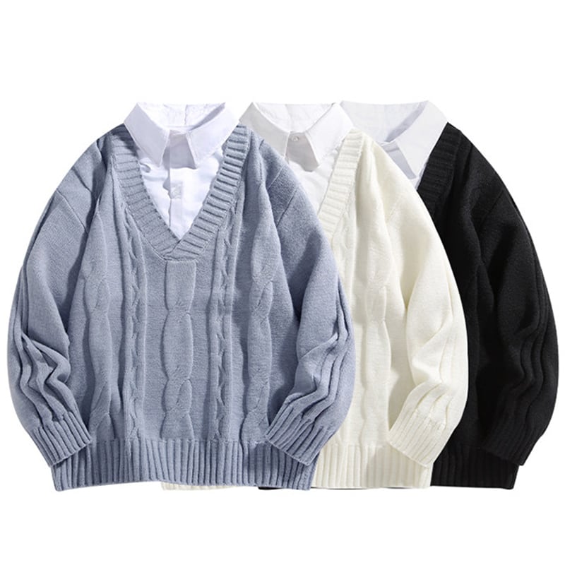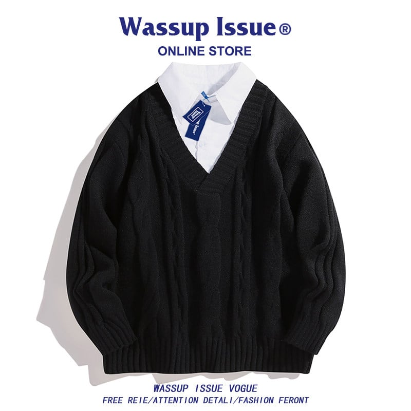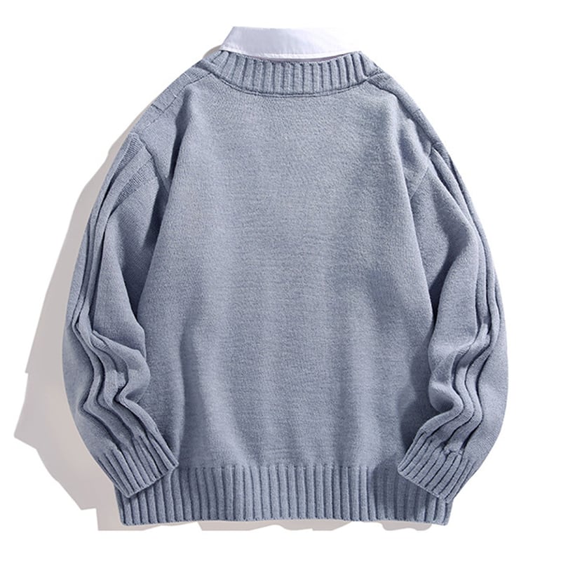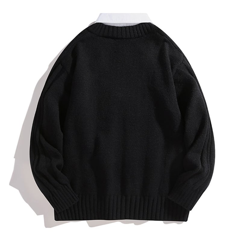 ♥重ね着の味わい、一枚で完成!【WSシリーズ】★セーター★ ユニセックス 3color ニットトップス フェイクレイヤード POLOネック