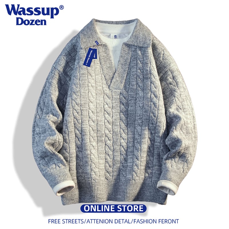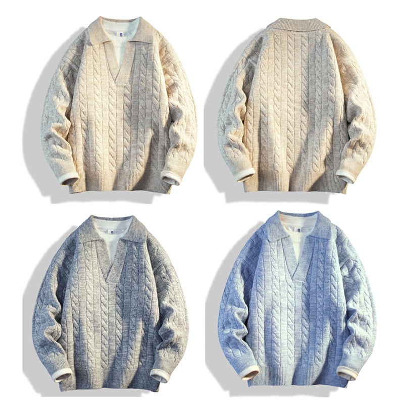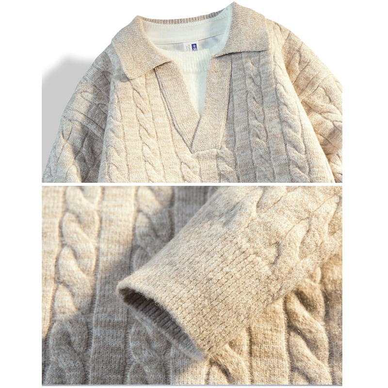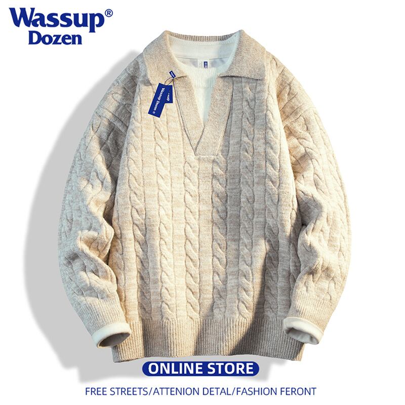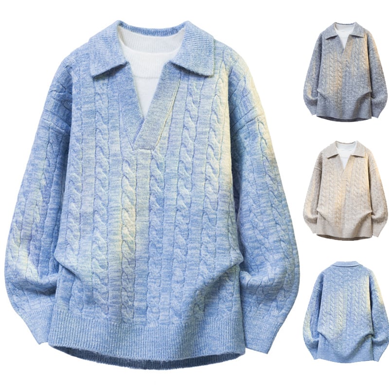 ♥一枚で重ね着スタイル!【WSシリーズ】★セーター★ ユニセックス 3color ニットトップス メンズ フェイクレイヤード Vネック POLOネック